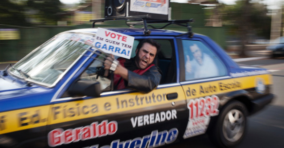 Contre baryton, soprano et tenor, troquons des sonorités bien moins harmonieuses et élitistes et parlons du vacarme incessant auquel s’adonnent les voitures de campagne des candidats au poste de vereador. En octobre se tiendront les élections de mi-mandat présidentiel qui désigneront les futurs préfets et conseillers municipaux (vereadores). En conséquence, des véhicules sillonnent les rues, le coffre chargé de puissantes sonos qui diffusent des messages en boucle.