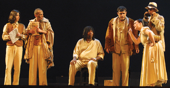 Avec 60 comédiens de 7 à 70 ans sur les planches, autant dire que régnait sur la scène une vitalité exceptionnelle. La musique, quant à elle, n’emprunte rien aux harmonies européennes et la représentation résulte en un spectacle détonant.