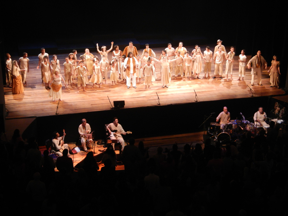 Petite parenthèse dans mon week-end festif, j’assistai, dans le Teatro Alfa de Santo Amaro, à une comédie musicale brésilienne, Ser Minas Tão Gerais (être Minas, si Gerais – du nom de la région Minas Gerais). Le livret a été composé en hommage au poète Carlos Drummond et au chanteur-compositeur Milton Nascimento. Sur ce dernier il fut dit, se Deus tem a voz, a voz é Milton Nascimento (si Dieu a une voix, c’est celle de Milton Nascimento). Aujourd’hui âgé de 70 ans, le temps a soumis son corps puisqu’il ne marche plus que supporté par d’autres acteurs mais sa voix, spectaculaire, a bravé les années.