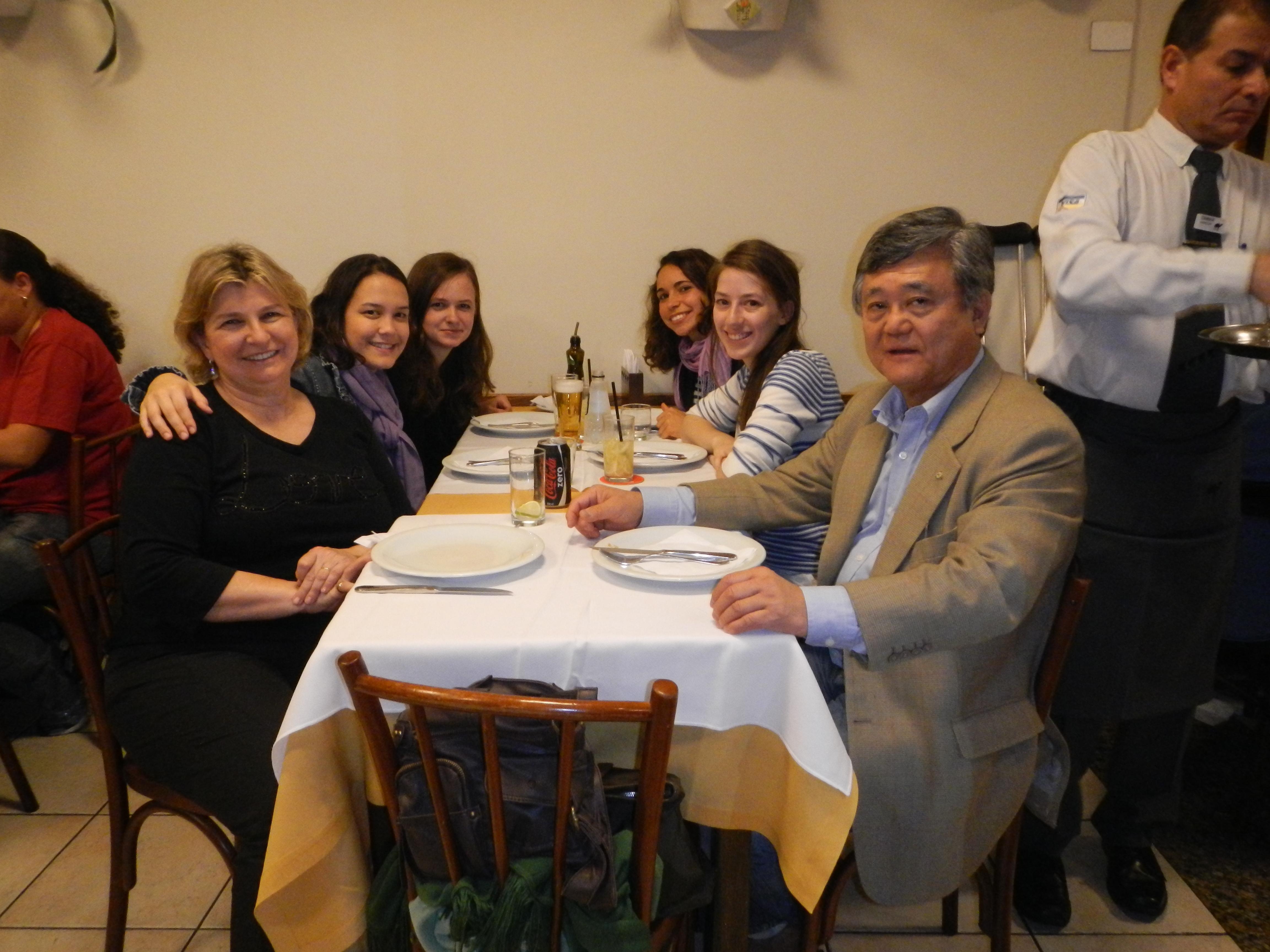 Ayant retrouvé au théâtre N., une étudiante brésilienne de la GV, en compagnie de ses parents, ceux-ci nous invitèrent dans une pizzeria qui ne payait pas de mine mais dans laquelle le tout São Paulo semblait se retrouver. Ce dîner fut l’occasion de goûter la pizza locale, dont les brésiliens s’enorgueillissent qu’elle soit tant supérieure à la pizza italienne. Pleines d’enthousiasme, C., S. et moi nous livrâmes à une grande discussion en portugais avec nos généreux hôtes paulistes.