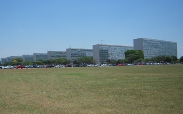 Les ministères s’alignent, identiques, le long de l’Esplanada dos Ministéros, comme si l’on cherchait à rompre toute idée d’individualisme et concept d’identité en imposant ce conformisme. Les immeubles ont beau être tous espacés de plusieurs centaines de mètres, l’on se sent vite étouffé par l’emphase mise sur les bâtiments officiels, ne pouvant échapper à l’impression d’être sans arrêt sous contrôle, privé de tout contact avec les autres habitants. Brasilia n’a d’ailleurs pas été conçue pour que l’on s’y croise. Il fait mauvais d’y être piéton : pas un trottoir, pas un coin d’ombre, pas une buvette et des distances énormes à couvrir dans la chaleur accablante du désert.