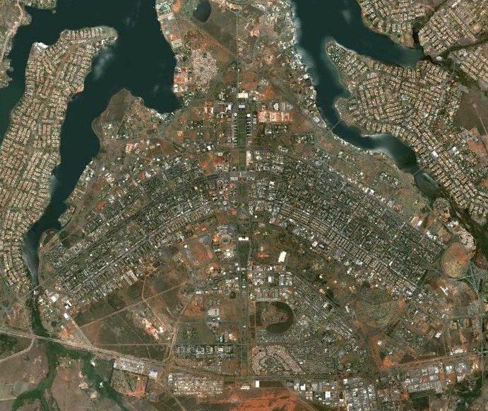 Outre le lac artificiel de Paranoá (plus de 40km2), outre s’élever dans la région la plus pauvre et aride du Brésil, un autre challenge attendait les urbanistes : faire de la ville un avion (utilisez votre imagination en regardant la vue aérienne).
