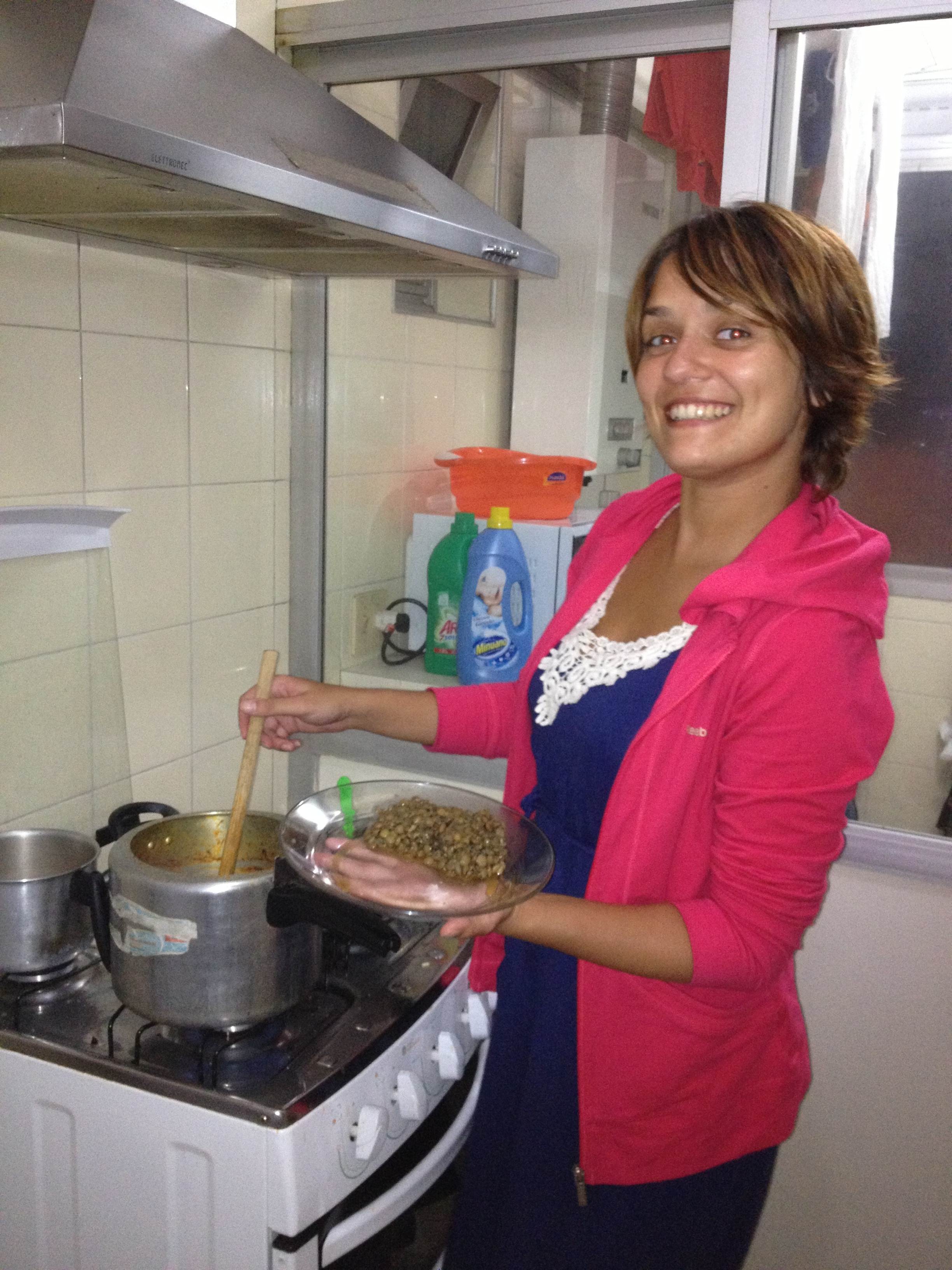 Cela dit, si vous tenez à goûter une spécialité brésilienne, n’optez pas pour leur vinho, dont l’arôme et les tannins démentent fermement l’affirmation ci-dessus. Dimanche, H. et moi avons été invitées à partager la feijoada dans une famille pauliste. Vous trouverez ce plat traditionnel absolument partout ici : arroz (riz), feijões pretos (haricots noirs), farofa (semoule de manioc très bon marché qui épaissit la nourriture), couve (chou), boi et porco (la viande de porc et de bœuf).