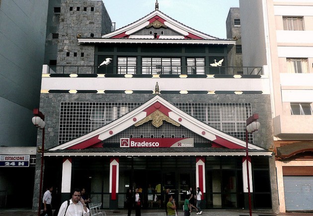 Je suis retournée dans le quartier japonais, Liberdade, car s’y tient tous les dimanches une sorte de marché où l’on peut goûter tout plein de spécialités nippones. J’ai remarqué que les seules maisons cliché étaient un McDonald et une banque brésilienne, Bradesco. Essayez de faire moins local…