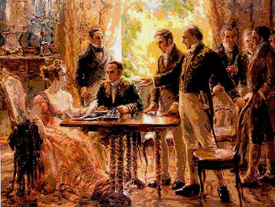 Chassée du Portugal par notre bienaimé Napoléon, la Cour portugaise s’exile au Brésil en 1808 et modifie, en 1815, le statut de la colonie pour en faire le Royaume-Uni du Portugal. Lorsqu’il rentre à Lisbonne en 1821, Jean VI laisse derrière lui son fils Pedro pour régent du Brésil. Défendant le retour au statut de colonie, la noblesse portugaise réclame la démission de Pedro mais ce dernier refuse et proclame en 1822 l’indépendance du Brésil, on lui prête alors la phrase « Independência ou Morte« . Ce trait d’esprit masculin est néanmoins inspiré par sa femme, Marie-Léopoldine d’Autriche, qui le lui conseilla et lui dit par la même occasion « O pomo está maduro, colhe-o já, senão apodrece » (le fruit est mûr, il est temps de récolter ou il pourrira). La même année Pedro fut nommé empereur constitutionnel à Rio de Janeiro. Son bras de fer avec le parlement le poussa néanmoins à céder son trône en 1831 à son fils, âgé alors de cinq ans.