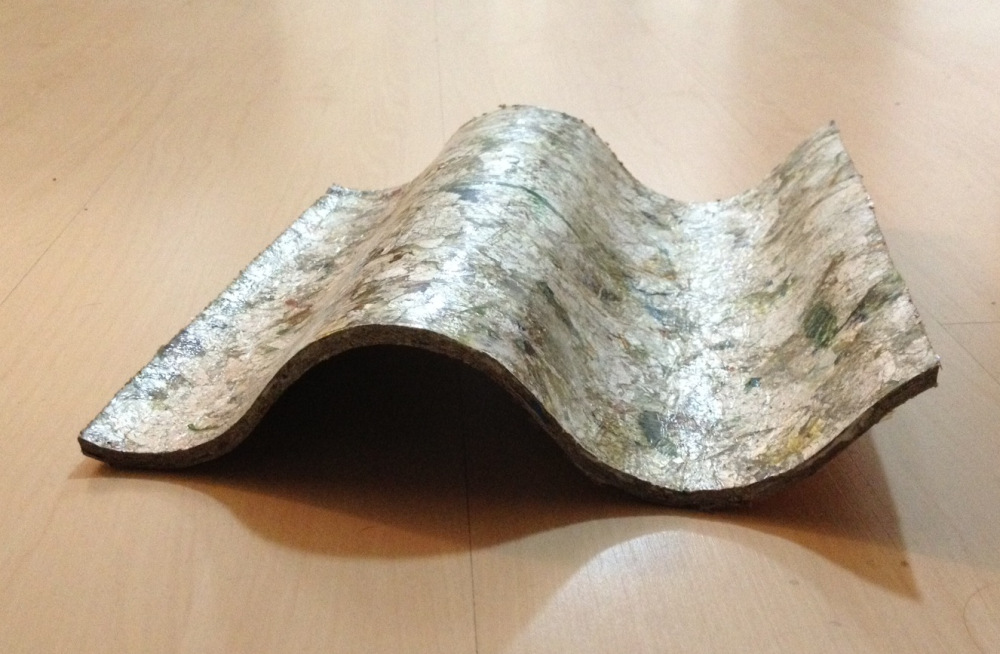 Nous avons finalement fait le tour de Ciclo, qui emploie une trentaine de personnes, et qui conçoit un produit qui connait un énorme succès : des tôles en TetraPak. Au lieu de désassembler les constituants des cartons TetraPak via un procédé coûteux, Ciclo, utilise les propriétés isolantes et résistantes de ce matériau et, à partir des déchets triés par une coopérative telle Vira Lata, fabrique des tôles pour toitures entièrement constituées de cette matière. A en croire le patron de l’usine, les marges sont excellentes. Il a d’ailleurs offert un petit souvenir à chacun d’entre nous.