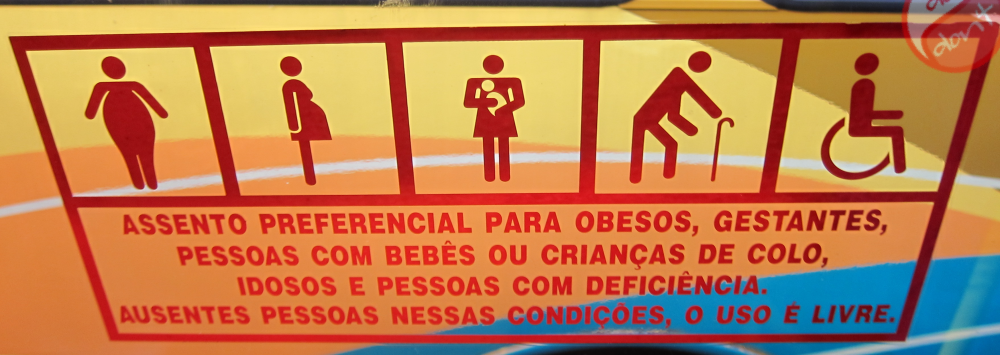 Je finis en remarquant qu’au Brésil, les personnes à mobilité réduite sont plutôt bien traitées puisqu’elles disposent de caisses dédiées dans le moindre supermarché, dans les transports… Petit fait étonnant, le panneau les signalisant dans les bus s’adresse en tout premier aux obèses !