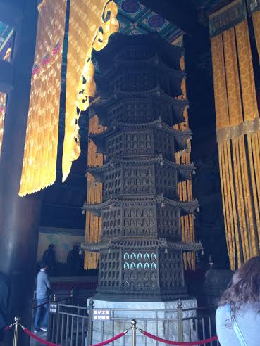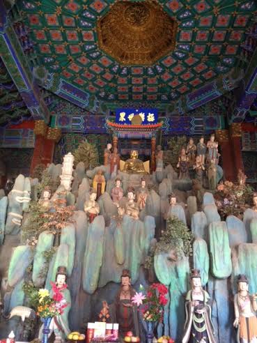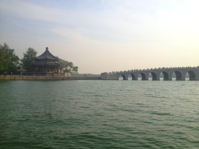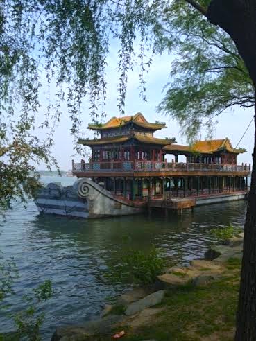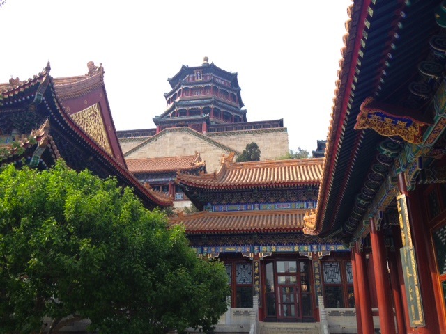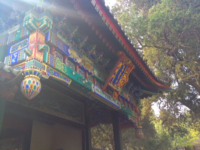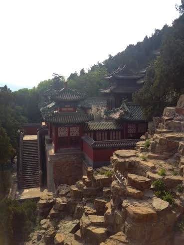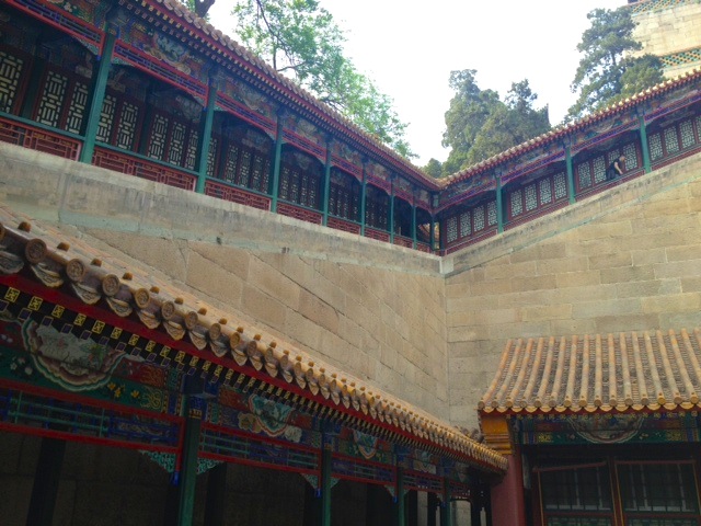 Autre incontournable : l'éminent lieu de villégiature des empereurs chinois, le palais d'été. S'abstenir de lire les panneaux qui sans cesse nous rappellent que les expéditions franco-britanniques ont par deux fois rasé l'ancien palais d'été et que ce n'est que grâce à l'impératrice Cixi que l'on peut admirer cette splendeur. Juché sur le flanc sud de sa colline (si vous m'avez suivie fidèlement, c'est feng-shui !), le complexe est une succession de temples accrochés à la paroi et perdus dans la végétation qui offrent autant de superbes panoramas.