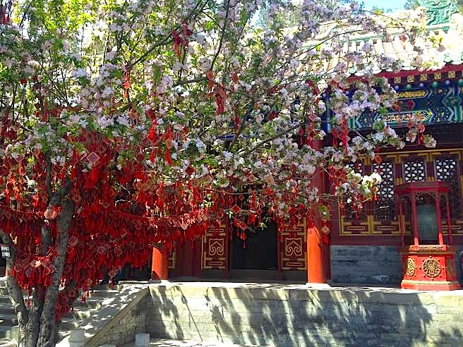 Au hasard de mes photos, vous revivrez le printemps pékinois qui ne dure que deux semaines et qui sépare le froid polaire du soleil qui rend fou. Pékin s'était pour l'occasion recouvert de fleurs et, partout, les lilas embaumaient la ville. Jamais je n'aurais cru que la capitale puisse être aussi agréable. L'occasion d'aller faire un tour au lac Beihai au milieu duquel flotte l'île des hortensias, surmontée du Dagoba blanc.