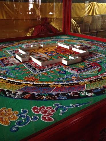 Dans l'un des innombrables temples qui bordent le lac, on trouve une colline plutôt impressionnante d'une dizaine de mètres de haut sur laquelle trône Bouddha. Vous verrez un grand mandala en sable coloré d'une finesse surprenante (représentation du ciel tibétain, qui a normalement vocation à être détruite une fois achevée pour rappeler le caractère éphémère des choses).