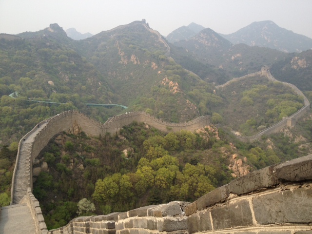 Une fois dépassées les hordes de touristes chinois haletants dans leur ascension, on parvient à des remparts désertés où il fait bon se promener seul ou en bonne compagnie. Les pentes sont vertigineuses et l'on manque cent fois de se rompre le cou tant certains pans sont escarpés. Et pourtant, les paysages vous coupent le souffle : des montagnes à perte de vue sur la crête desquelles serpente ce Mur qui n'en finit pas de disparaître dans l'horizon. Les parties praticables sont bien entendu impeccables mais celles qui vous saisissent sont celles qui se dressent dans le lointain, partiellement écroulées, que ne fréquentent plus que les oiseaux et qui s'érigent contre une nature qui semble vouloir reprendre ses droits.