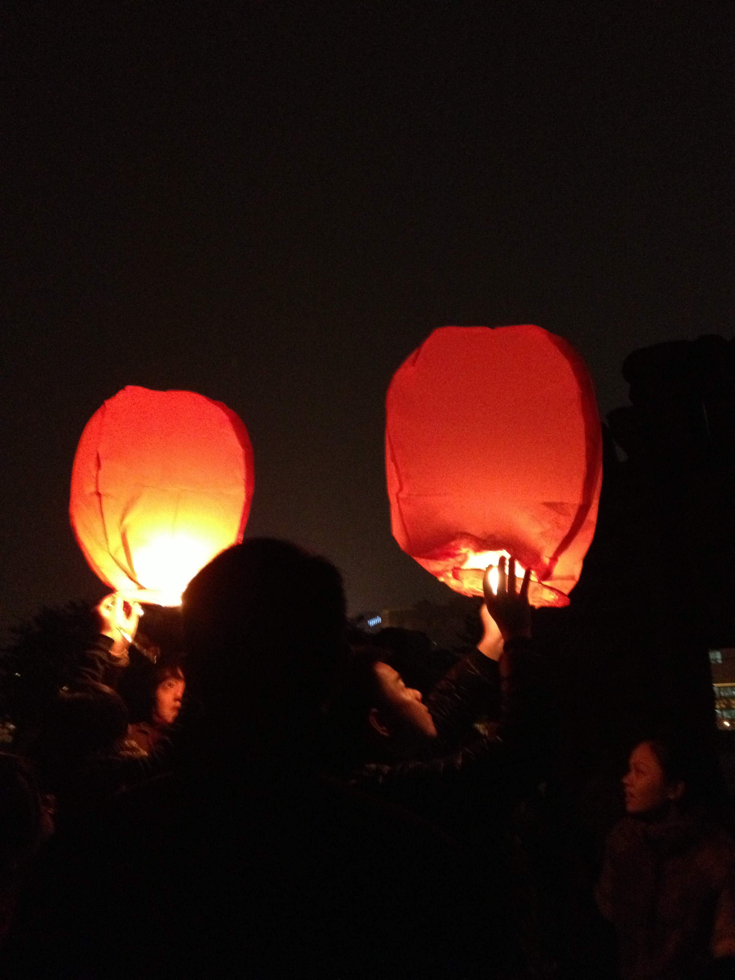 Pleine lune oblige, aujourd'hui s'achèvent les deux semaines de célébrations de la nouvelle année chinoise (année du serpent). En ce dernier jour se déroule la fête des lanternes durant laquelle les gens liquident leur stock de feux d'artifice. Mais au pays des artificiers, point de pétards. Ce sont de véritables gerbes multicolores qui explosent incessamment dans le ciel autour de vous. Traditionnellement des lanternes rouges en papier sont aussi allumées et s'envolent dans le ciel. Somptueux, penserez-vous sûrement. Malheureusement la fête n'est pas si folle ; le nouvel an étant avant tout une fête que l'on passe en famille, il n'y a pas de grand rassemblement et les parents donnent à présent des lumières en plastique à piles à leurs enfants. Nous parvînmes toutefois à assister au lancer de deux lanternes dont l'une s'enfuit dans la nuit avant qu'un policier hargneux ne vienne déchirer la seconde. Tous ces feux simulent un incendie qui ravagerait la ville et qui détournerait le méchant (dont la nature dépend des légendes) de son but d'anéantir la ville, croyant sa besogne déjà accomplie.