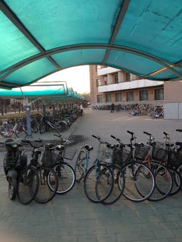 Je me suis acheté ma première bicyclette - qui risque de bientôt se faire voler - pour 260 yuan (31€ ;) ). Sur le campus c'est l'accessoire primordial : il est plus normal d'être à vélo qu'à pied. Avec 30 000 étudiants, vous imaginez les milliers de petites reines à garer et la tête des cycloparkings que l'on trouve absolument partout. Pour parfaire ma métamorphose en étudiante stéréotypée, j'ai profité de mon week-end pour découvrir les bars locaux dans le quartier moderne (et coréen) de Wudaokou où tous les internationaux sortent quand ils ont la flemme de prendre le métro (le lieu de sortie des élèves chinois, lui, s'appelle la bibliothèque).