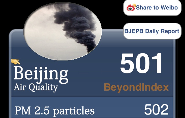 Ce matin, je regarde par la fenêtre et n'aperçois pas même l'immeuble en face du mien : pic de pollution. Vissés à nos applications Beijing Air Quality, nous consultons tous les jours avec la frénésie des boursicoteurs l'indice de la concentration de particules dans l'air. Les variations sont phénoménales. Hier encore l'horizon était cyan, quoi de mieux pour aller visiter le Temple du Ciel ?