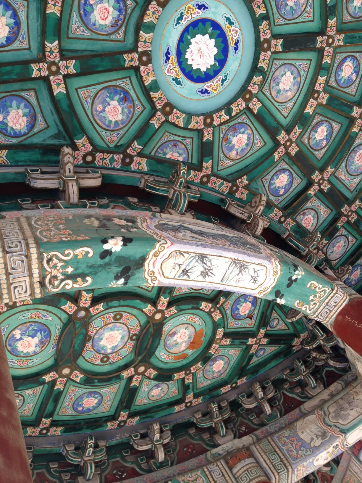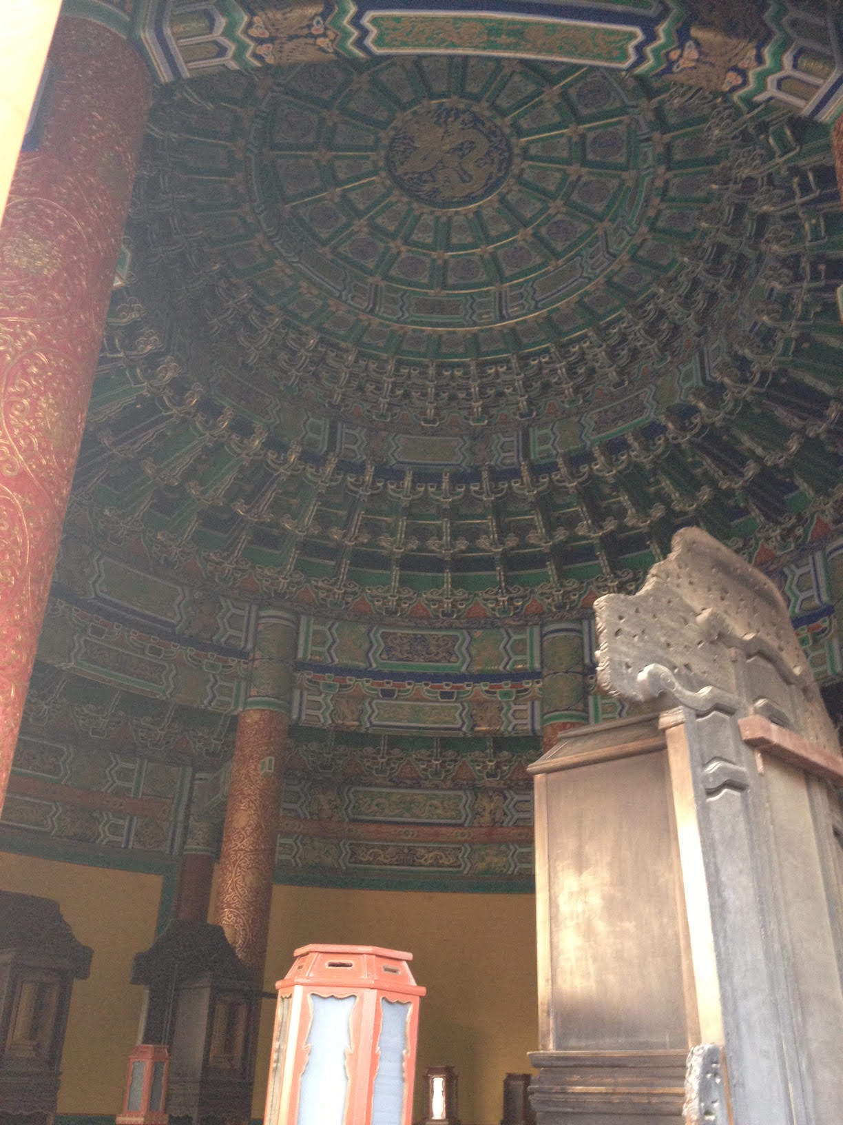 Une fois encore, Pékin se montre bien plus intéressante que São Paulo. On ne peut que s'arrêter pour reprendre sa respiration devant de telles splendeurs. Ne manquez pas de constater sur les photos les peintures sur les poutres de la galerie Changlang et les plafonds à caissons. Tout ça est évidemment inscrit au patrimoine de l'UNESCO. Pourtant, pas grand chose n'est d'époque. Détruit par un incendie le temple du ciel a été reconstruit fidèlement en 1890. Les Chinois semblent maîtres dans l'art de détruire puis reconstruire à l'identique, soit dit en passant. Il est d'ailleurs impressionnant de constater qu'ils n'ont pas oublié les gestes et leur savoir-faire, contrairement à nos orfèvres et ébénistes (nous serions aujourd'hui incapables de reproduire certains services de Mme de Pompadour, paraît-il).