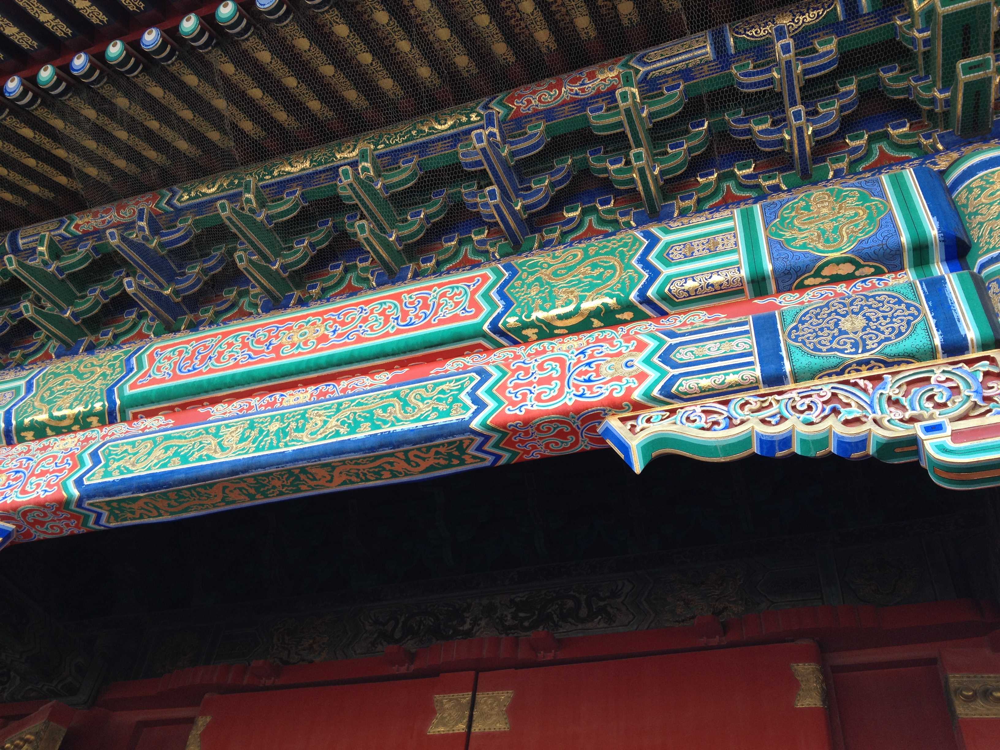 Malgré tout, je suis sûre que vous réussirez à apprécier la splendeur des lieux. Ici encore nous retrouvons les peintures sur bois flamboyantes, les plafonds à caissons, les ingénieuses charpentes construites sans le moindre clou et les surprenantes toitures où les animaux du zodiaques retiennent des tuiles étincelantes. C'est un peu répétitif mais c'est somptueux. Le plus amusant, ce sont les hutong de l'autre côté du canal qui protège la Cité.
