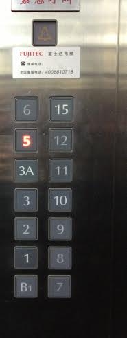 Souvenez-vous, je vous avais raconté que les chiffres 4 et 14 étaient de mauvais augure en Chine car leurs prononciations se rapprochent respectivement de "mort" et "mort du père". Regardez dans les photos celle qui se nomme "ascenseur" et vous verrez qu'il n'existe pas d'étages 4, 14 ni 13 (l'absence du 13 vient du fait que c'est un signe négatif chez les Européens - donc on n'est jamais trop prudent). Que ces étages soient sautés n'est pas du tout une fantaisie et est loin d'être un fait isolé ici, la superstition prend juste une dimension tout à fait incroyable.
