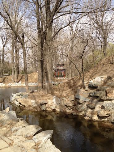 Aujourd'hui, ce parc est une réelle désolation. Certes, nous sommes encore en hiver mais le parc est plein de rocailles et la végétation peu abondante. Pas la moindre fontaine ou cascade pour vivifier les lacs et cours d'eau inanimés. Tout semble mort. Heureusement, il y a les Chinois, toujours contents de nous sauter dessus pour nous prendre en photo.