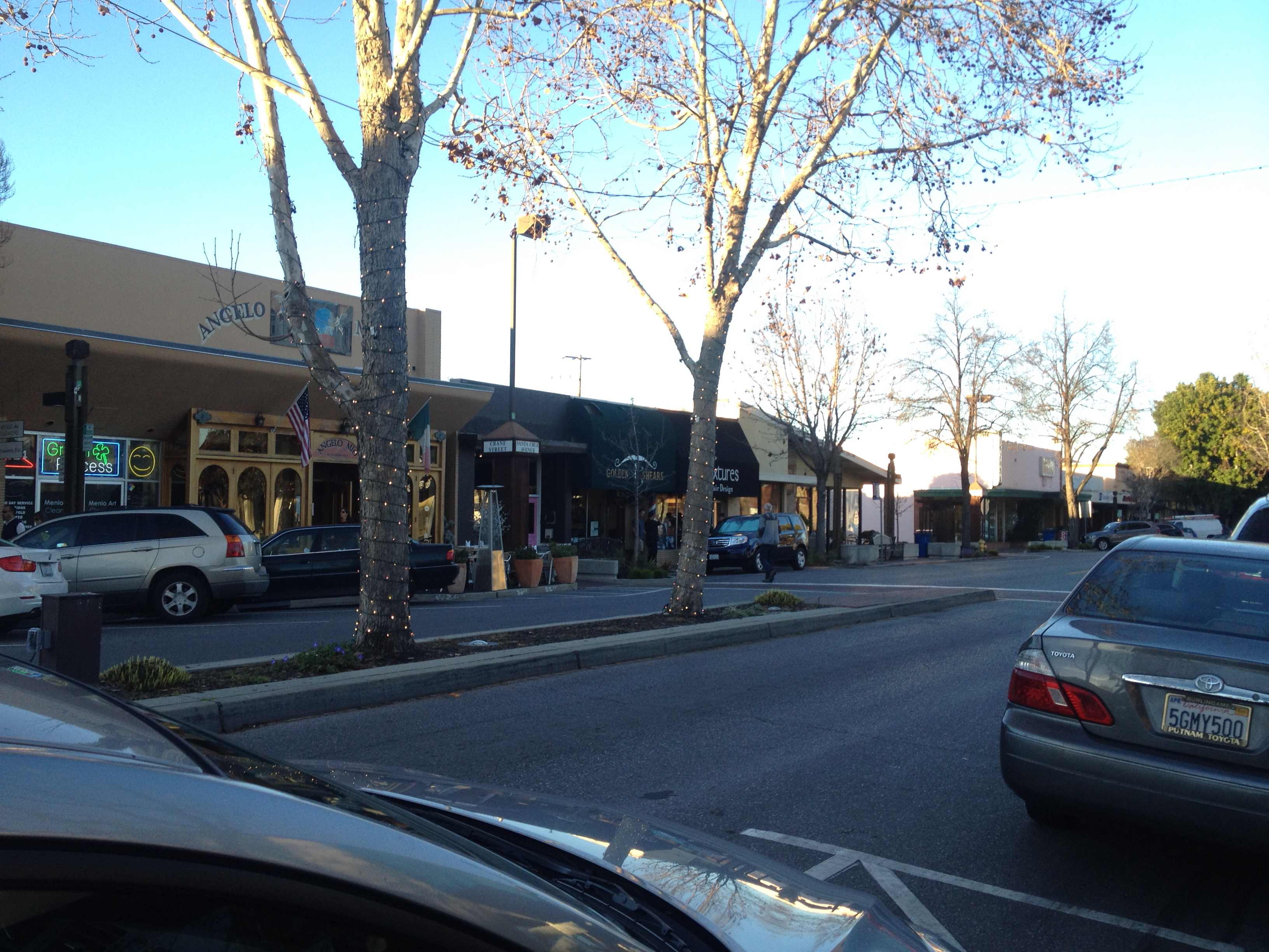 Tout est étalé. Il n'y a AUCUN transport en commun, pas même un bus (juste une sorte de RER qui va de San Francisco à San José mais qui est complètement inutile et d'ailleurs la plus proche station est à 1h à pied de chez moi). Pour le moindre déplacement, il faut une voiture : la première rue commerçante est à 50min à pied et le premier supermarché à 30min (ça peut se faire mais comme ça monte et ça descend énormément, on ne peut pas être chargé). Je voulais m'acheter des rollers mais les distances sont vraiment trop longues. Le vélo me semble assez éreintant aussi avec ces collines partout mais je pense essayer.