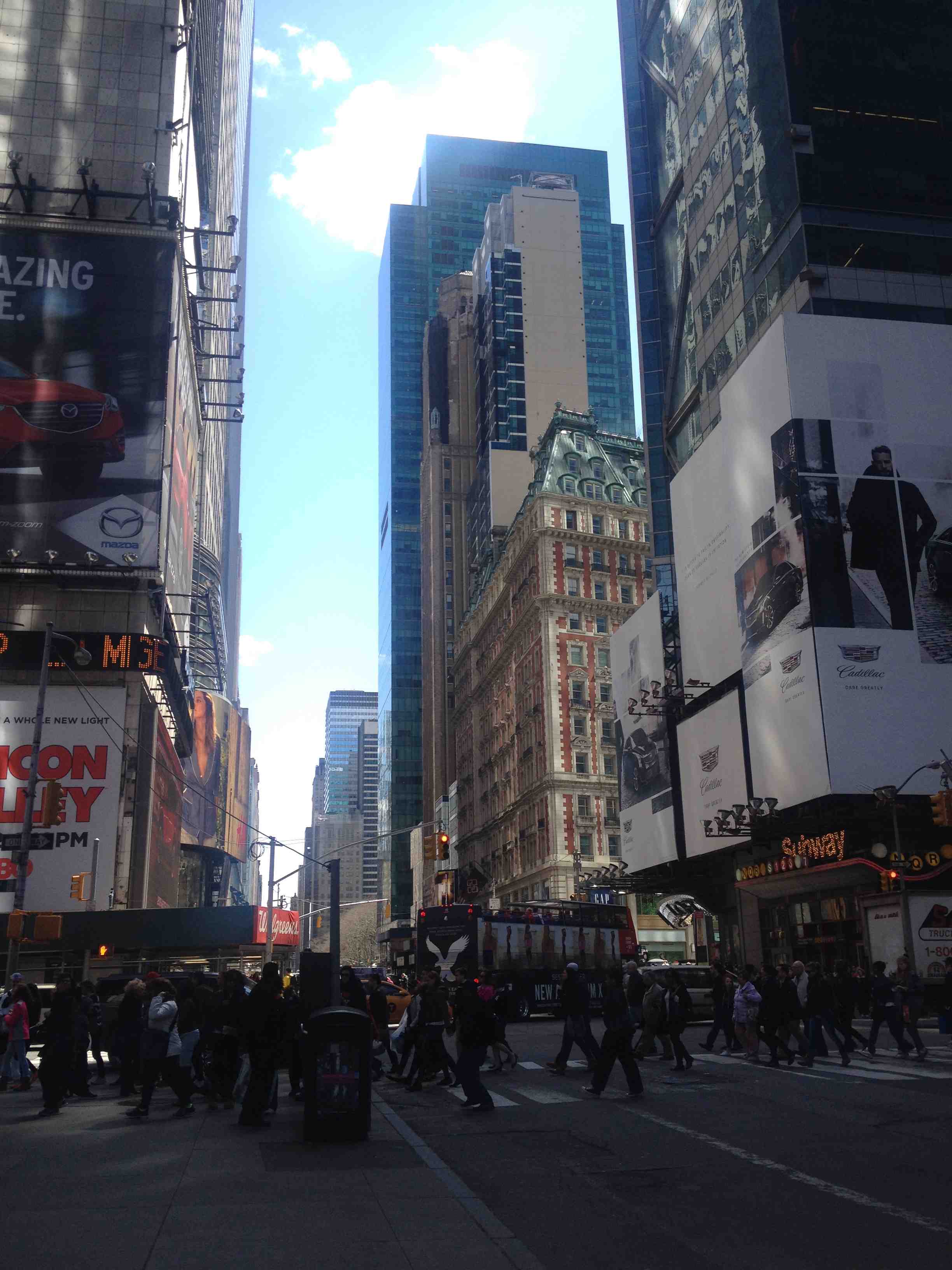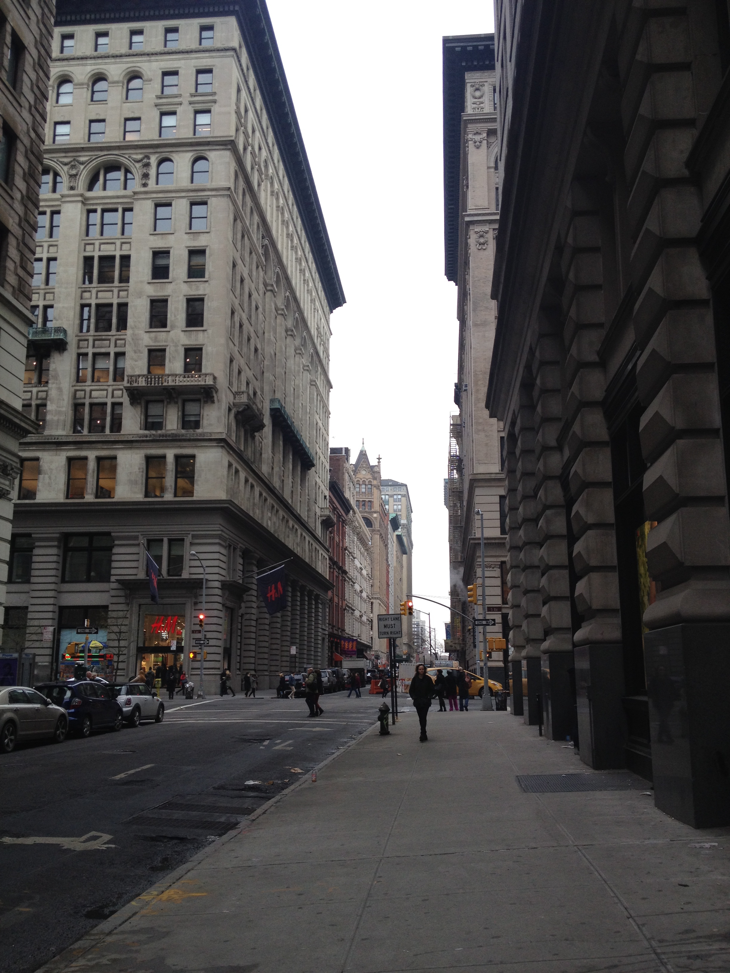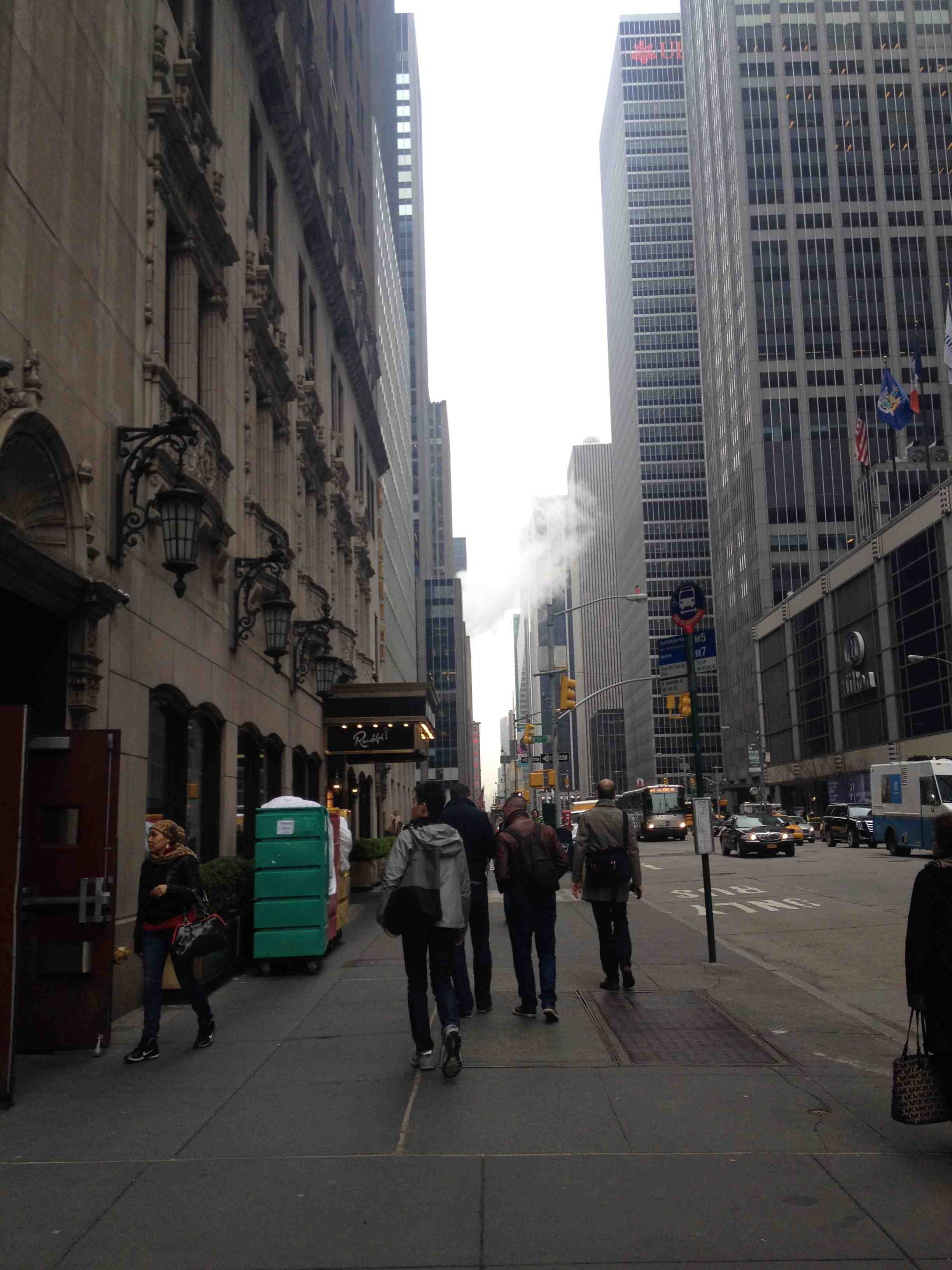 Grâce aux longues balades et déambulations pour rejoindre ces différents quartiers, nous avons pu nous imprégner de New York. Première impression : c'est bien moche et c'est bien sale. Toutefois, s'en dégage une véritable atmosphère et l'architecture est remarquable. Autre constat : Manhattan est exactement comme montrée dans les films. Je ne pouvais pas distinguer d'endroits en particulier vus au cinéma et cependant l'ambiance et la disposition générale (les escaliers de secours, les fumées qui s'échappent de partout, les bouches d'incendie, les immeubles, etc.) rappellent ces innombrables scènes où les protagonistes hèlent un taxi jaune, traversent la rue avec des dizaines d'autres gens, se baladent avec un American coffee à la main et, plus souvent, courent dans les rues à l'annonce d'un danger imminent genre vague géante ou extraterrestre dans le ciel décapitant l'Empire State Building.
