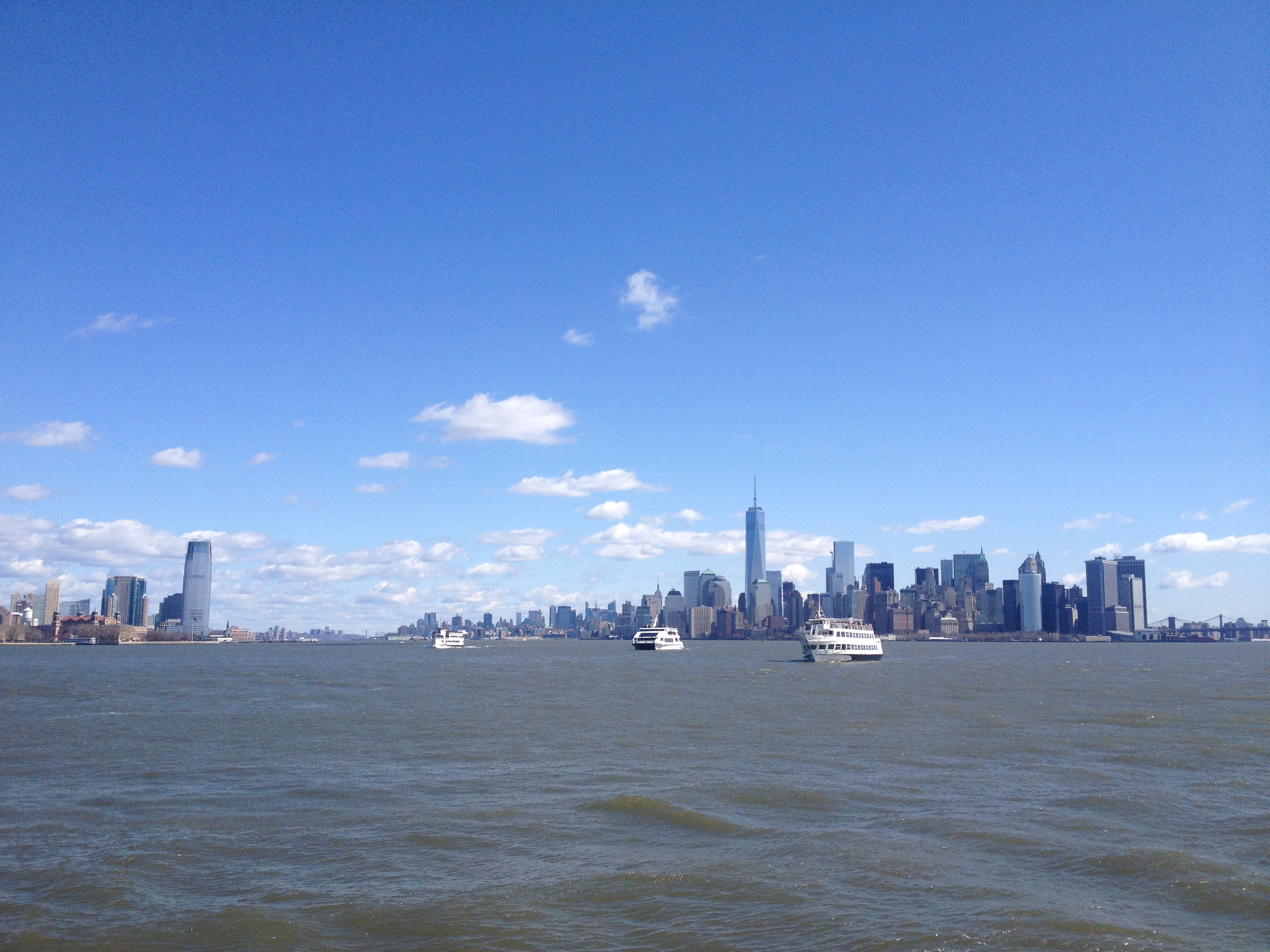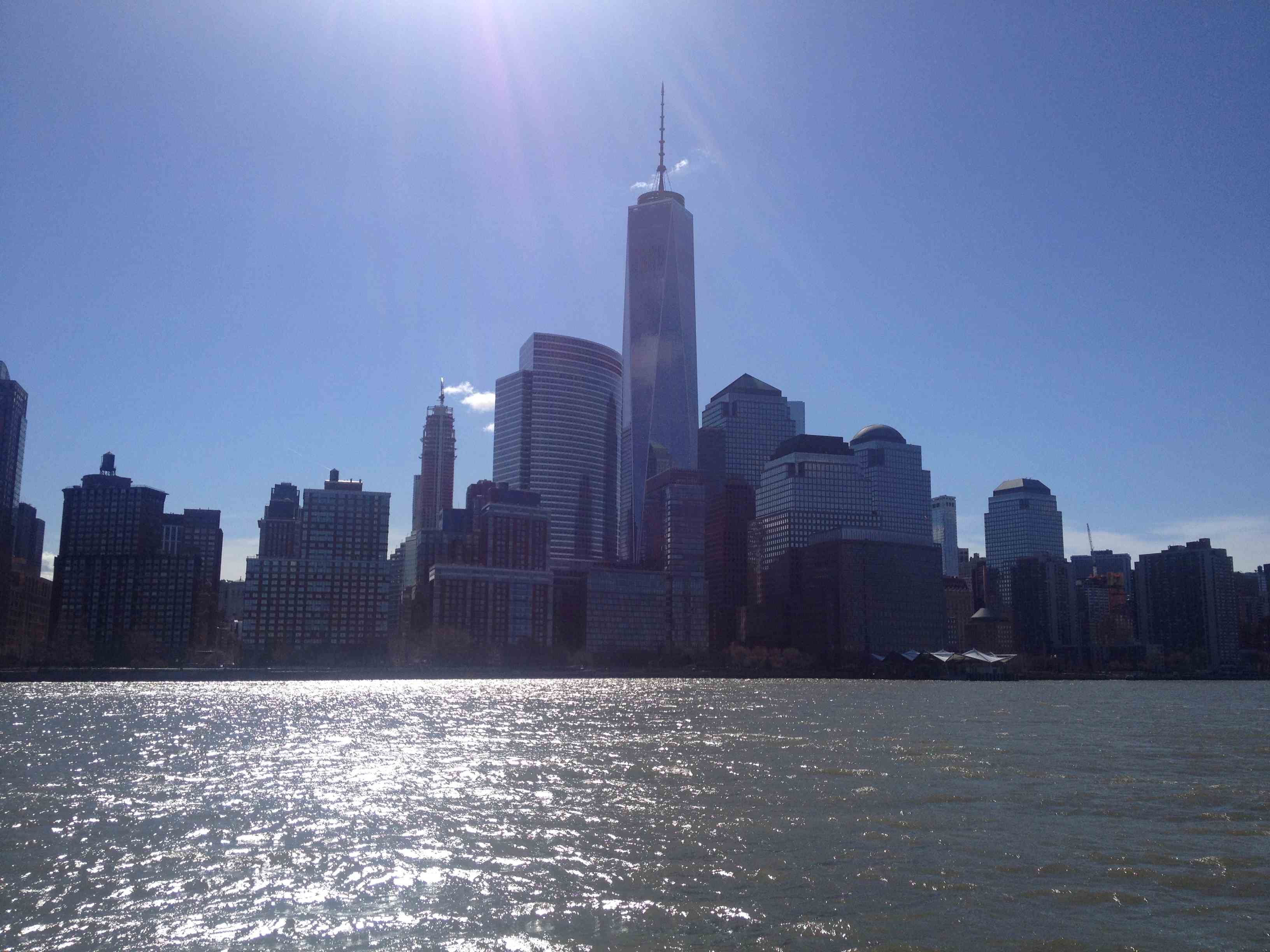 D'autres moyens de transport plus agréables, induiront bien moins de stress dans votre nouvelle vie newyorkaise. Durant notre croisière sur l'Hudson, les petites Bardamu que nous étions découvrîmes cette fameuse ville debout. Comme toute bonne métropole américaine, New York est un quadrillage parfait et offre ainsi des perspectives incroyables lorsque l'on se trouve dans le parfait alignement. En descendant l'Hudson, nous arrivâmes au quartier financier de Manhattan avec ses gratte-ciel interminables qui reléguaient leurs immeubles de voisins d'à peine vingt étages au rang de petite cabane minable. Le 1 World Trade Center les dominait tous du haut de ses 1 776 pieds (un demi-kilomètre), un chiffre symbolique, celui de la date de la déclaration d'indépendance des Etats-Unis.