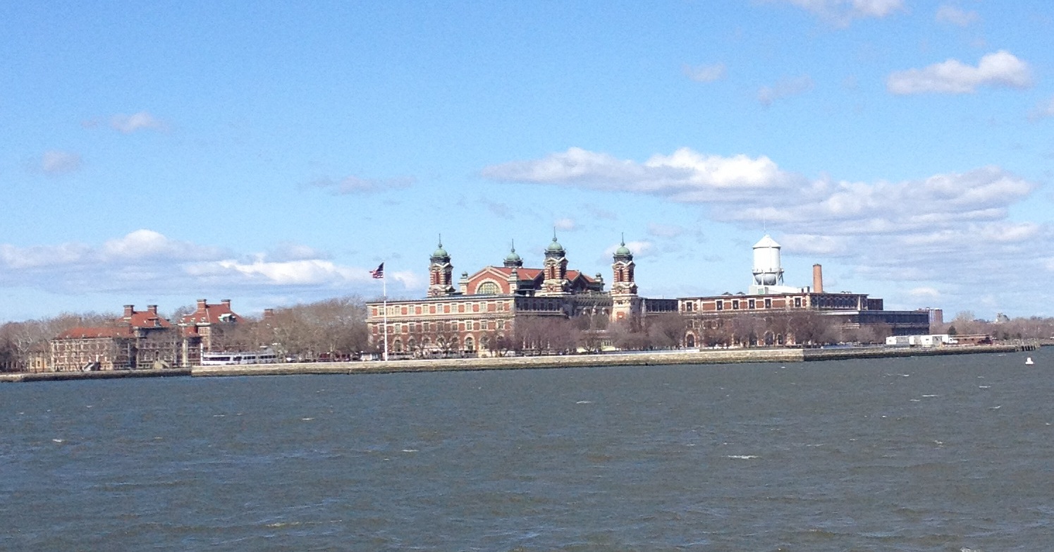 Réminiscence des sombres heures passées à faire des mots croisés en cours d'anglais, Ellis Island et son magnifique bâtiment principal se dessinèrent au loin. Alors, ils nous revinrent tous en mémoire, ces irlandais faméliques et leurs pommes de terre, ces histoires de quarantaine et de diagnostics médicaux inscrits à la craie sur les migrants.