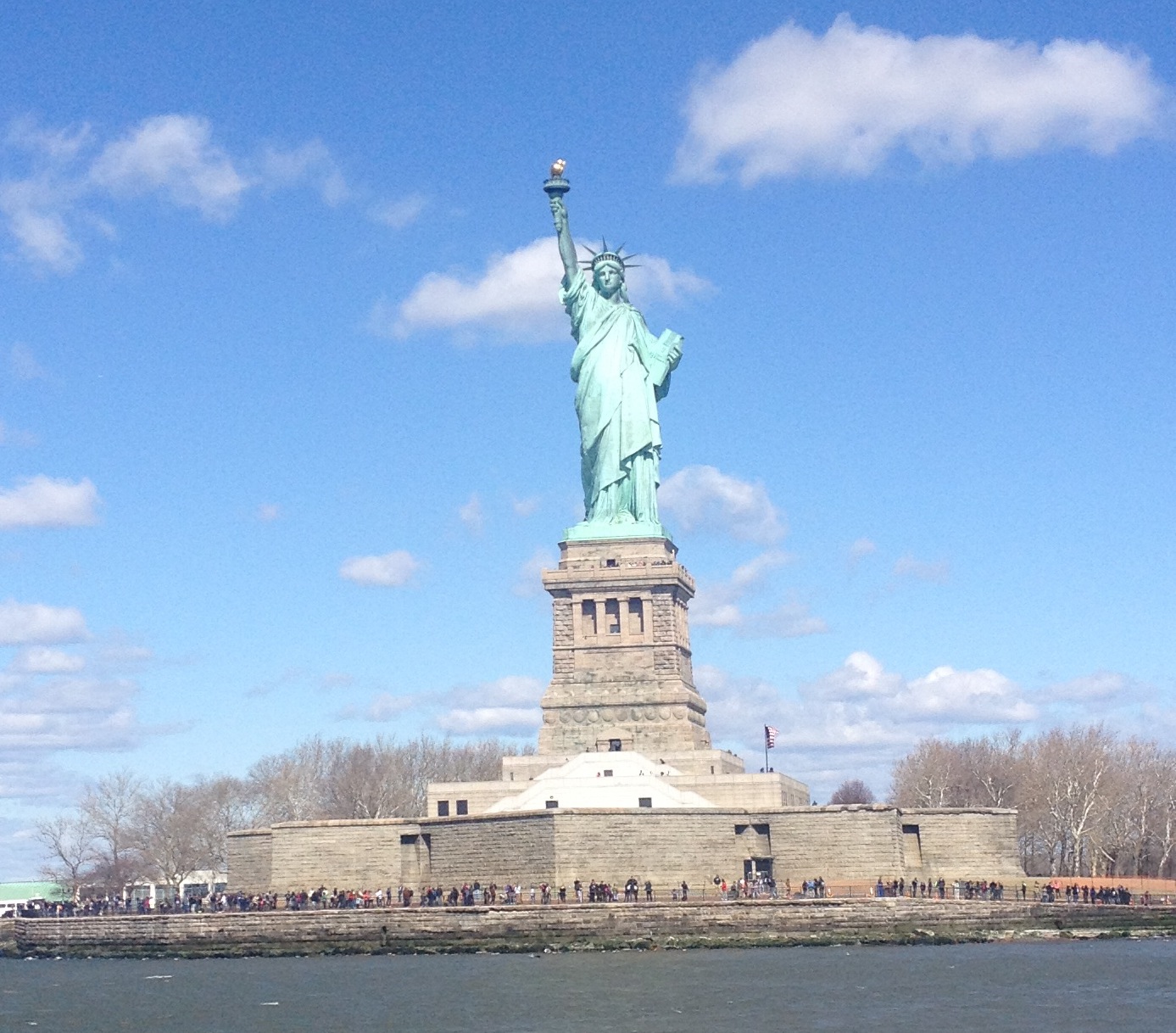 Nous voilà sorties dans l'embouchure du fleuve, nous avons laissé l'île de Manhattan se profiler derrière nous doucement et l'océan s'offre devant nous comme une étendue interminable avant l'Europe. Ne manquerait-il pas quelqu'un à l'appel ? Retournons-nous, elle est là. Elle se dresse devant nous, prête à nous accueillir après ces semaines passées sur l'eau à fuir la misère et la pauvreté. La Liberté éclairant le Monde, le chef d'œuvre de Bartholdi, Eiffel et Viollet-le-duc, m'apparait enfin. Depuis 1886 qu'elle m'attendait.