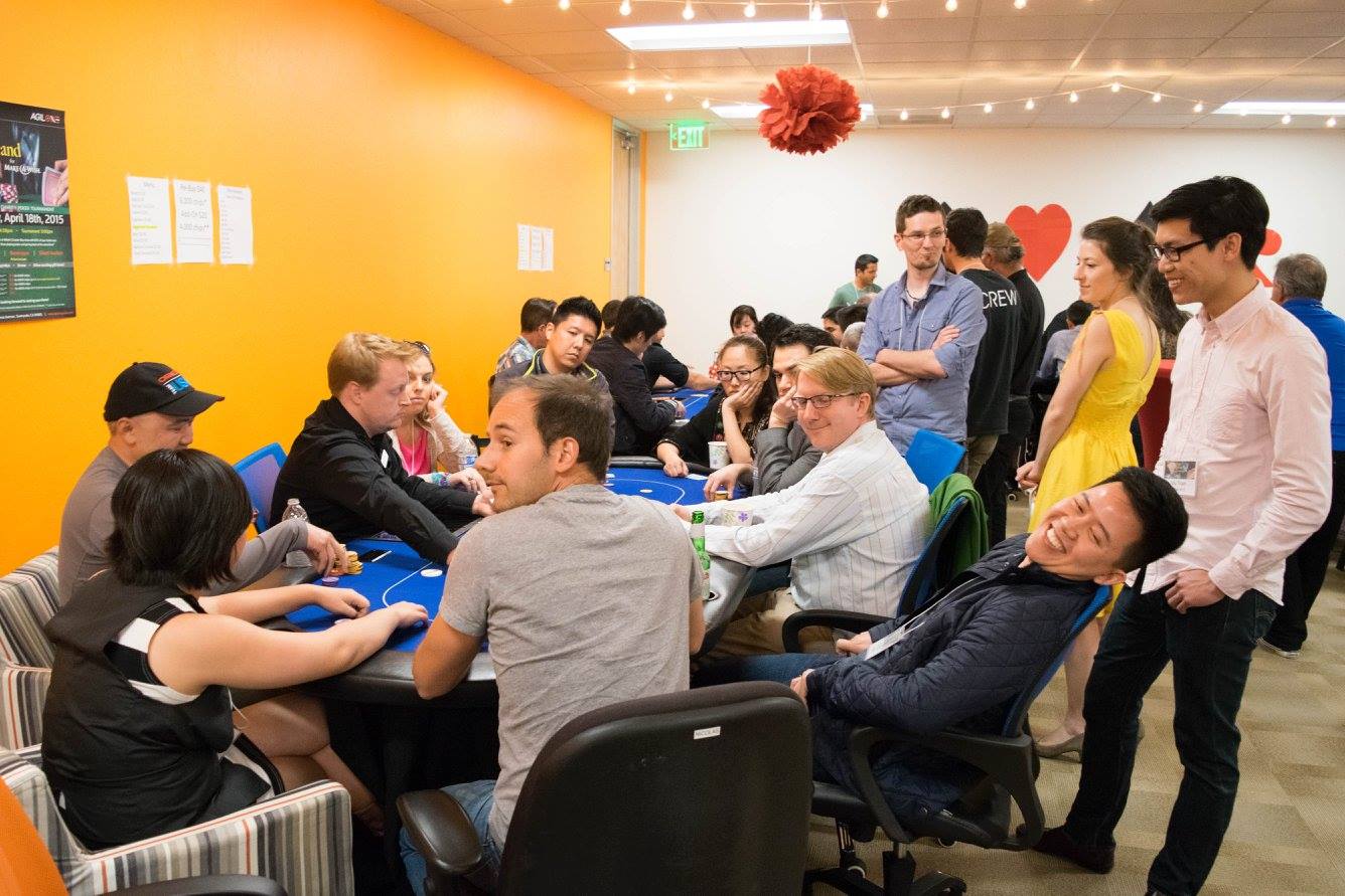 Vous l'avez lu, même en weekend, je reste confortablement en meute avec mes collègues. Il y a une ou deux semaines la RH, qui est une invétérée de Las Vegas et tient un tripot un jeudi par mois chez elle, a organisé un tournoi de Poker un samedi soir au bureau. Je précise que les profits de l'évènement ($10 000 quand même) ne sont pas allés dans sa poche ni dans la mienne malheureusement mais ont été reversés à une association quelconque.