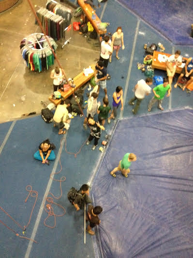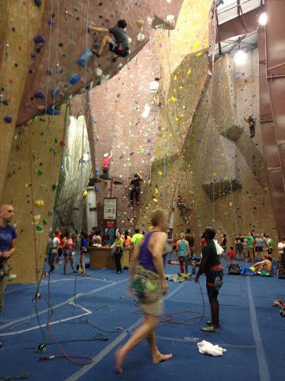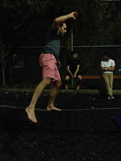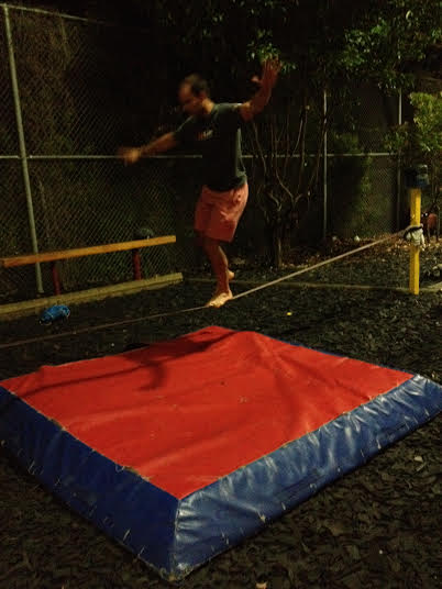 Hormis ces divertissements calorifiques, vous serez ravis de savoir que je me suis remise à l'escalade (si l'on peut dire que mes passages furtifs aux associations sportives du lycée et d'HEC ont jamais constitué une véritable activité extrascolaire). Deux collègues s'y sont mises sérieusement et y vont trois ou quatre fois par semaine et je vais essayer des les accompagner avec moins d'assiduité. Depuis que nous avons eu notre folle nuit à l'hôpital après qu'H s'est déboîté l'épaule, j'y suis retournée deux ou trois fois. Roger est lui venu faire de la slackline.