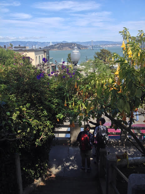 J'ai rapidement mis à profit ces séances de grimpette pour partir à l'assaut de Telegraph hill, une coline magnifique au cœur de San Francisco sur laquelle est plantée la Coit Tower dont l'architecture art déco illustre bien le nom. Pour y parvenir il faut passer dans des dédales d'escaliers au milieu de jardins fleuris et de petites maisons ravissantes.