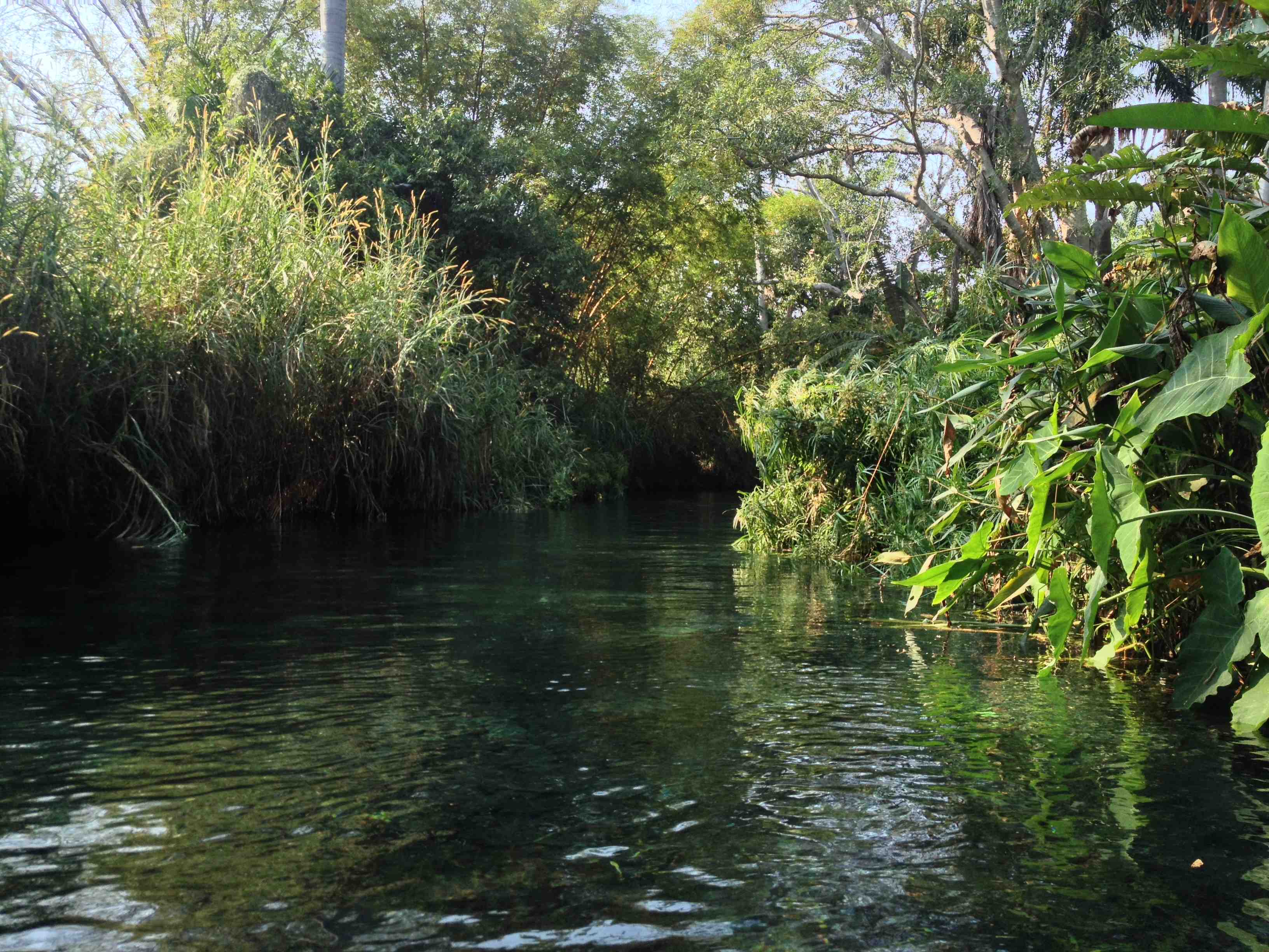 L’Alejandro nous conduisit aux Estacas, à trois heures de Mexico. Apres avoir plongé dans une rivière parmi les bougainvilliers, le courant nous porta sans effort sous une canopée tropicale. Nous nous croyions seuls au monde avec les oiseaux saluant notre passage tandis que nous voguions sur eaux limpides au milieu de cette nature splendide.