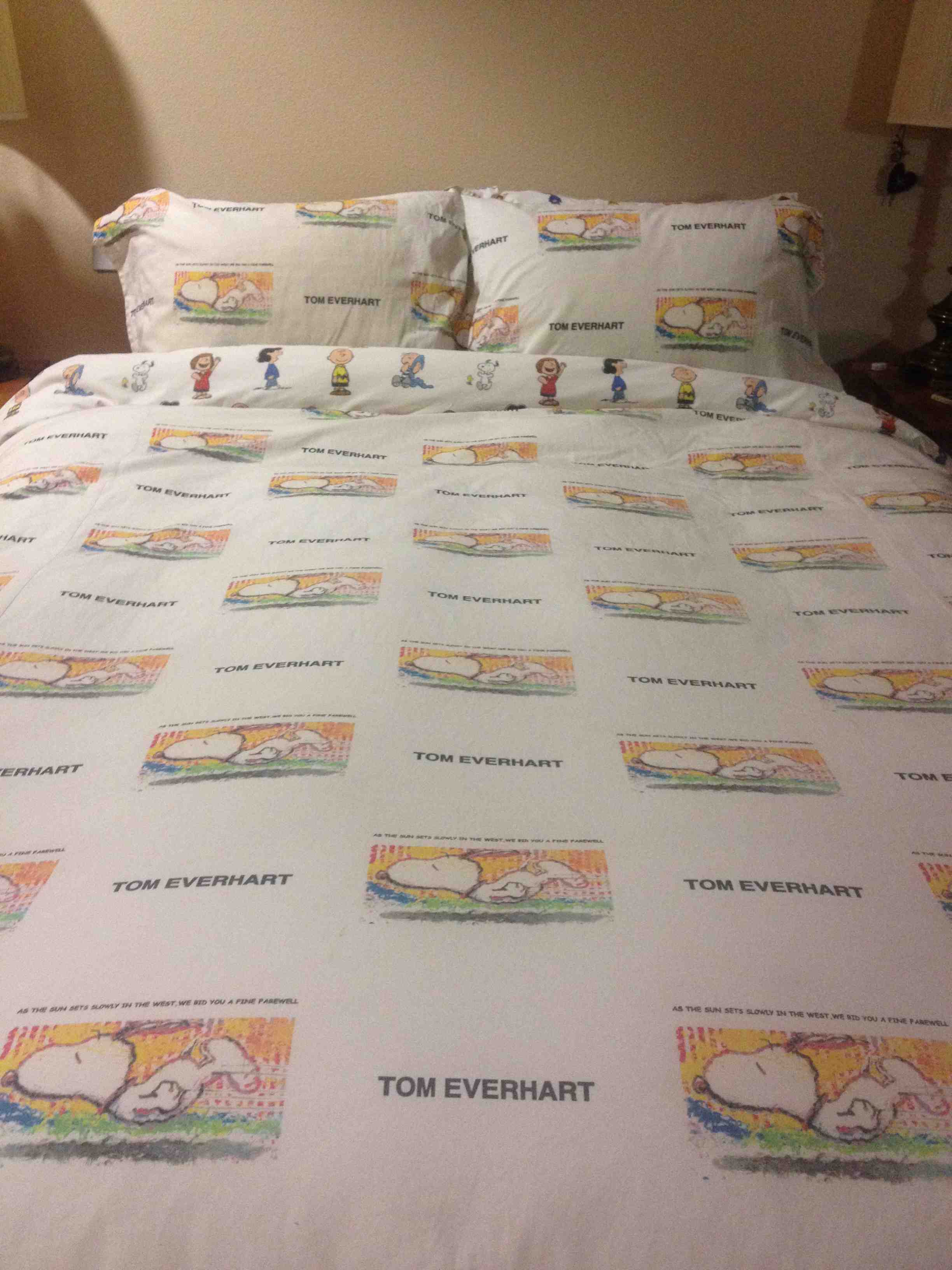 Durant cet étrange weekend de flottement et d’errance, nous rendîmes visite à une famille éloignée de R à Santa Rosa. La dame chez qui nous logions était la veuve de Charles Schultz, le père de Snoopy. Pas moyen d'échapper au petit chien laconique, tantôt aviateur, tantôt boxeur, toujours philosophe. Pas très populaire en France, il jouit aux Etats-Unis d’une grande renommée grâce aux millions de produits dérivés et aux films que les licences ont permis. Dans la maison pour les invités, les draps étaient Snoopy, les tableaux Snoopy, les serviettes de bain Snoopy, les carreaux de céramique Snoopy, le vin Snoopy… La famille a également fait bâtir une super patinoire et l’équipe de hockey locale arbore Snoopy sur son jersey.
