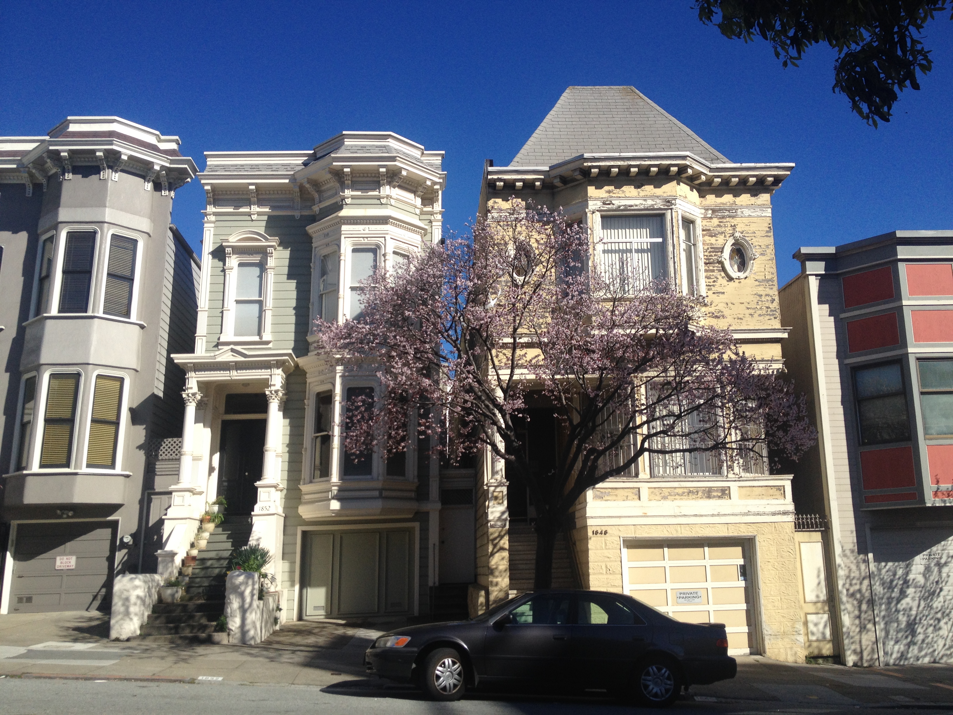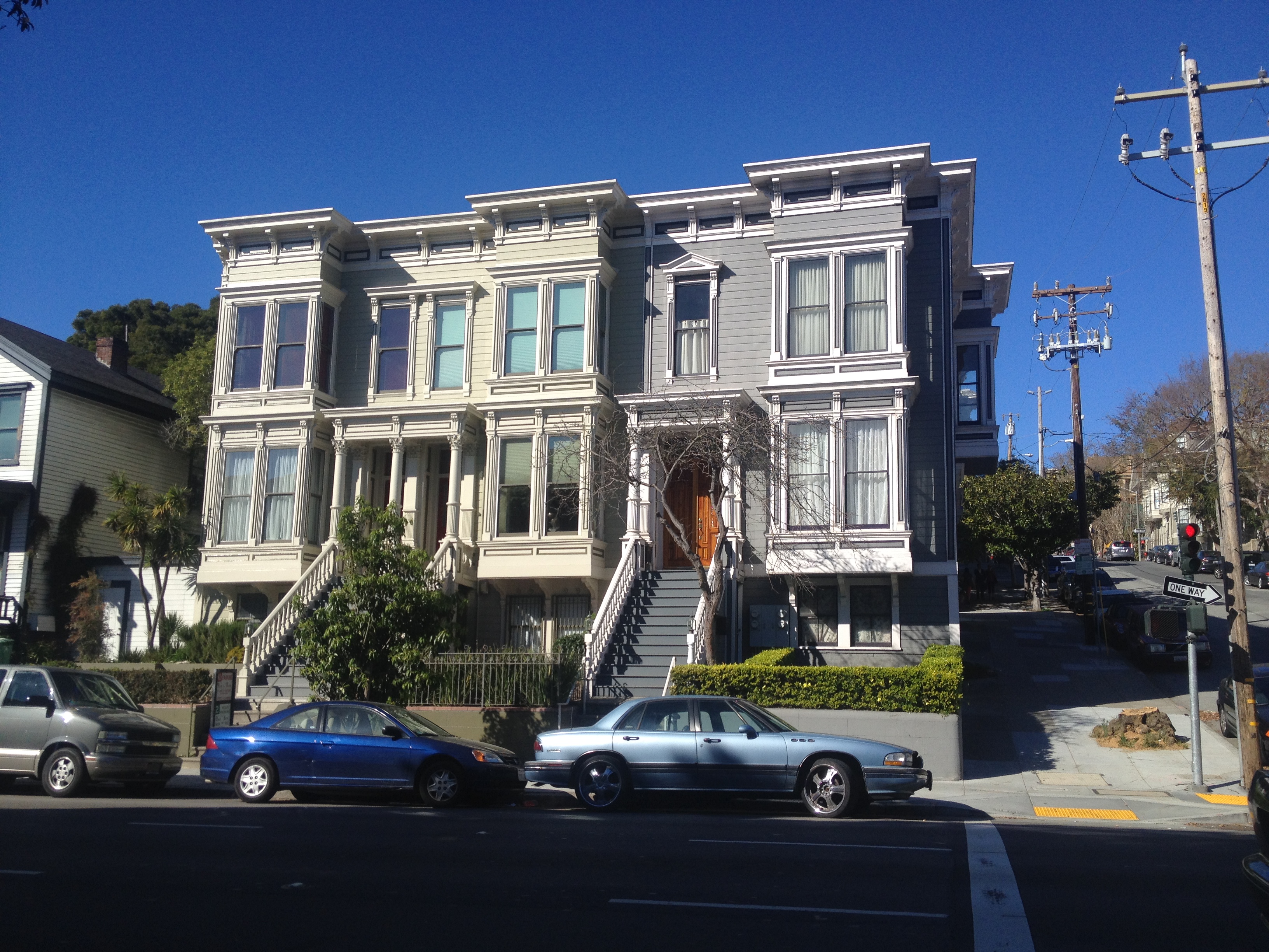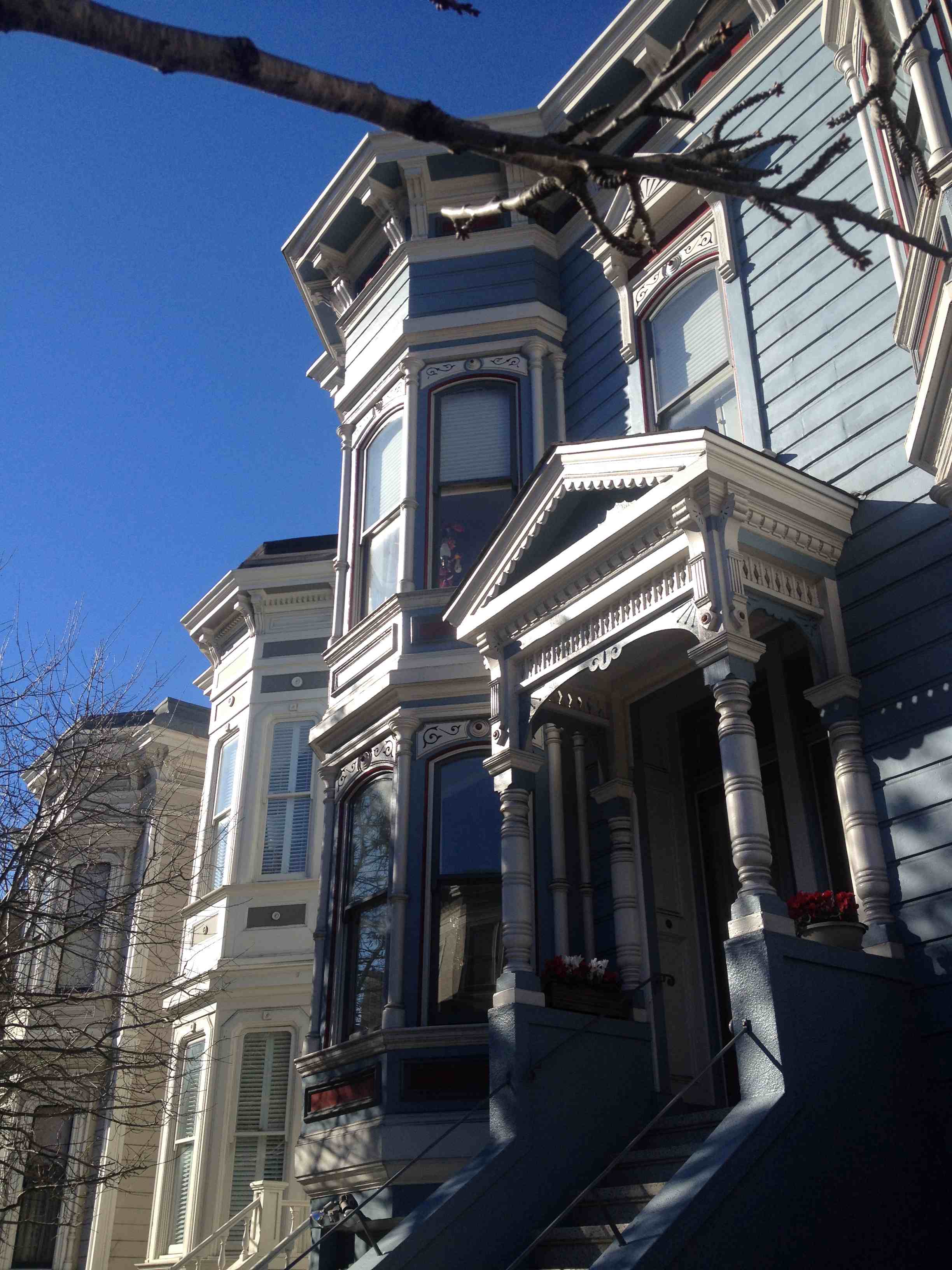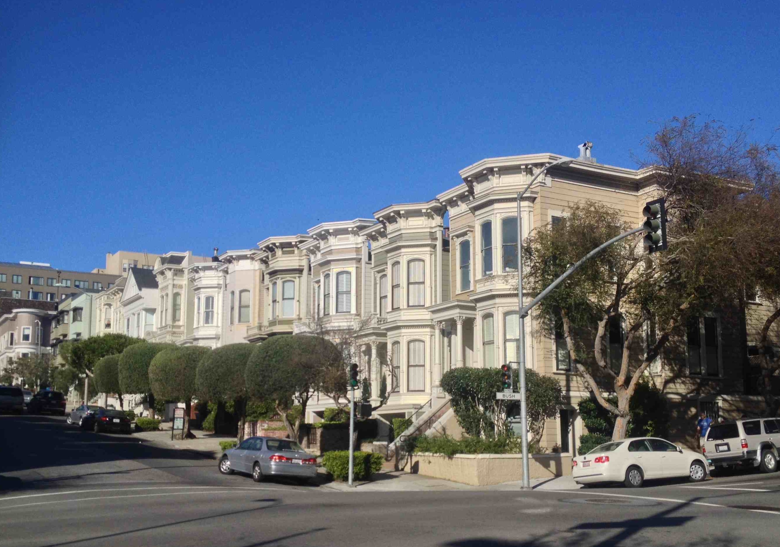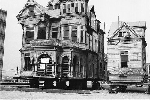 Pour comprendre la ville, il faut savoir que San Francisco fut ébranlée par un terrible tremblement de terre en 1906 (7,8 sur l'échelle de Richter) qui s'ensuivit d'un feu qui dura trois jours et détruisit 80% des habitations. Une grande partie de la ville est donc post-1906. Et la mode à ce moment-là était aux maisons victoriennes. Beaucoup de celles dans l'ouest ont survécu, d'autres furent reconstruites et de nouveaux styles apaprurent lorsqu'il n'y avait plus rien à sauver (ex: le financial district). Toutefois, après la guerre un grand élan de renouvellement urbain frappa les Etats-Unis et poussa les autorités à raser des blocs entiers d'immeubles - et 2 500 maisons victoriennes ayant survécu à l'incendie de 1906 disparurent dans les quartiers pauvres comme Japantown où coexistaient japonais et noirs (certaines furent sauvées et transportées dans d'autres blocs). Tous les clubs de jazz furent rasés et des bâtiments modernes japonisants sortirent de terre.