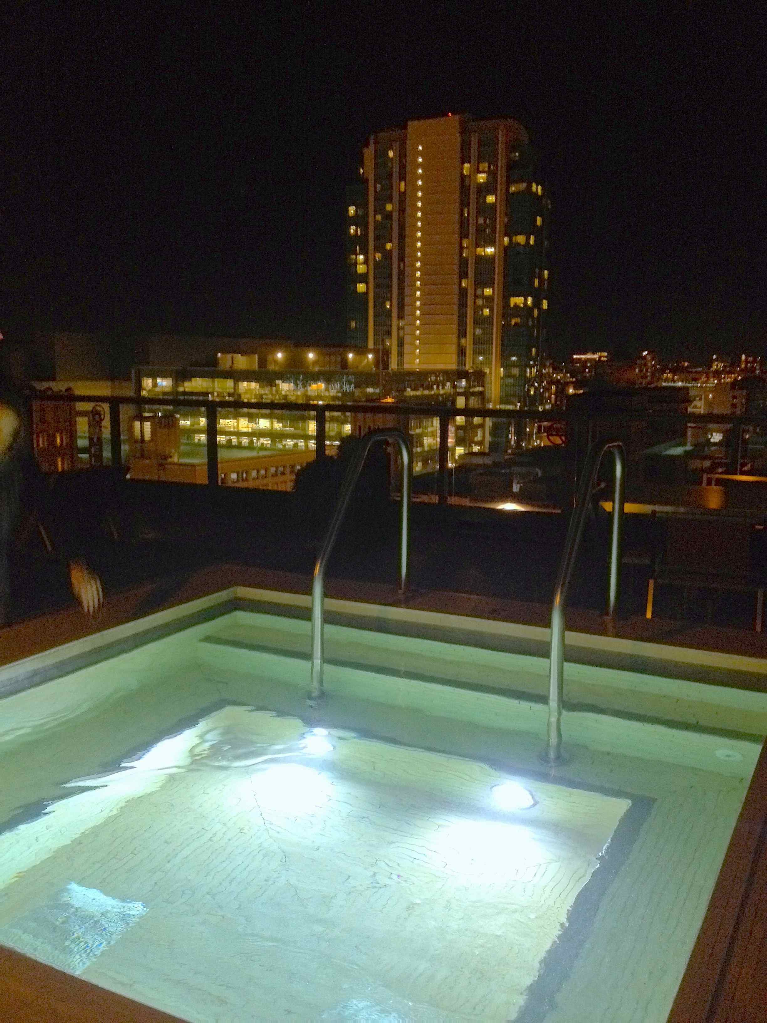 Première escapade à SF jeudi soir lorsqu'A - un ami troyen arrivé en même temps que moi en Californie - nous a invités sur la terrasse panoramique de l'immeuble de son bureau pour profiter d'une vue spectaculaire sur les lumières de la ville depuis le jacuzzi.
