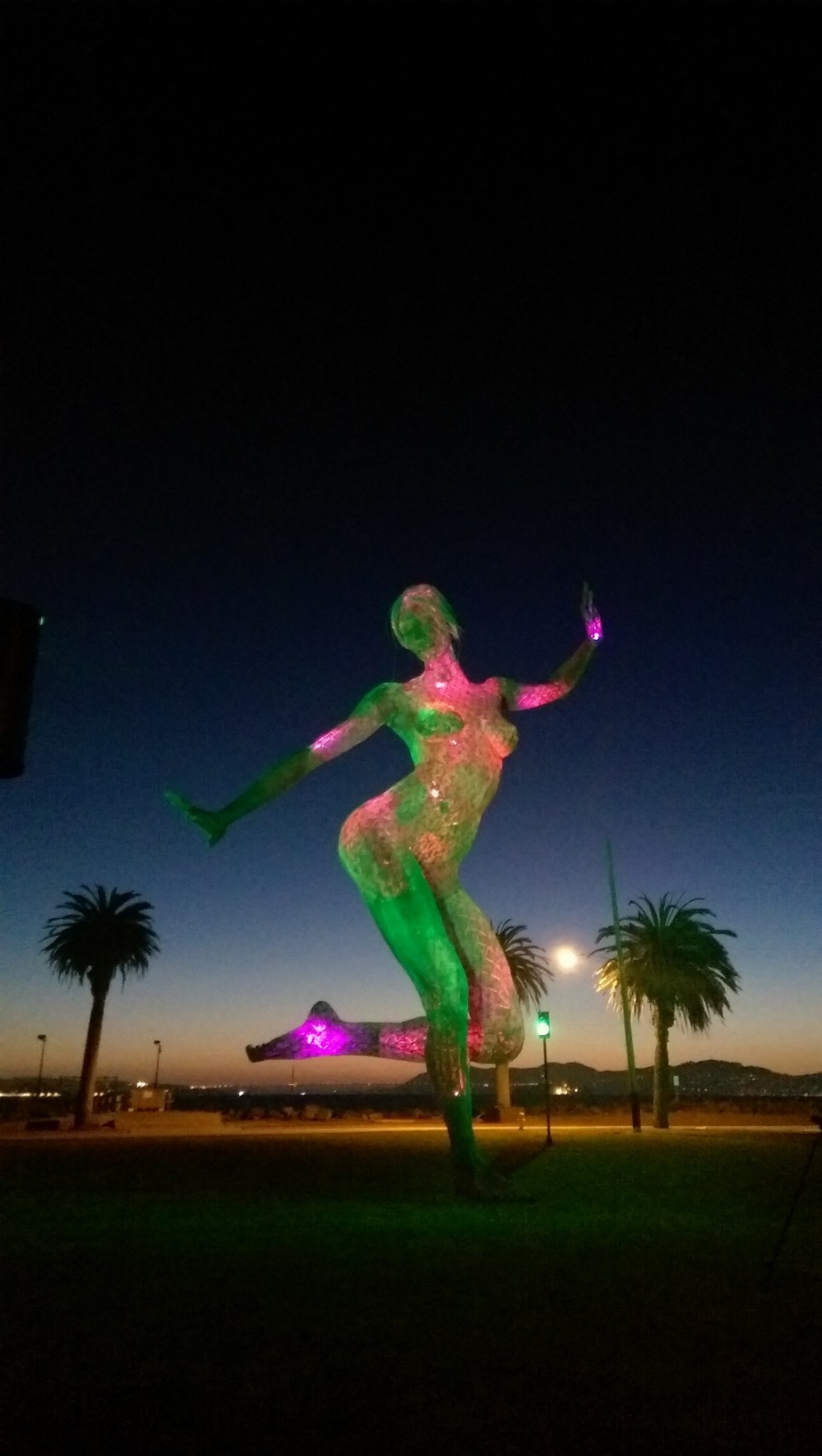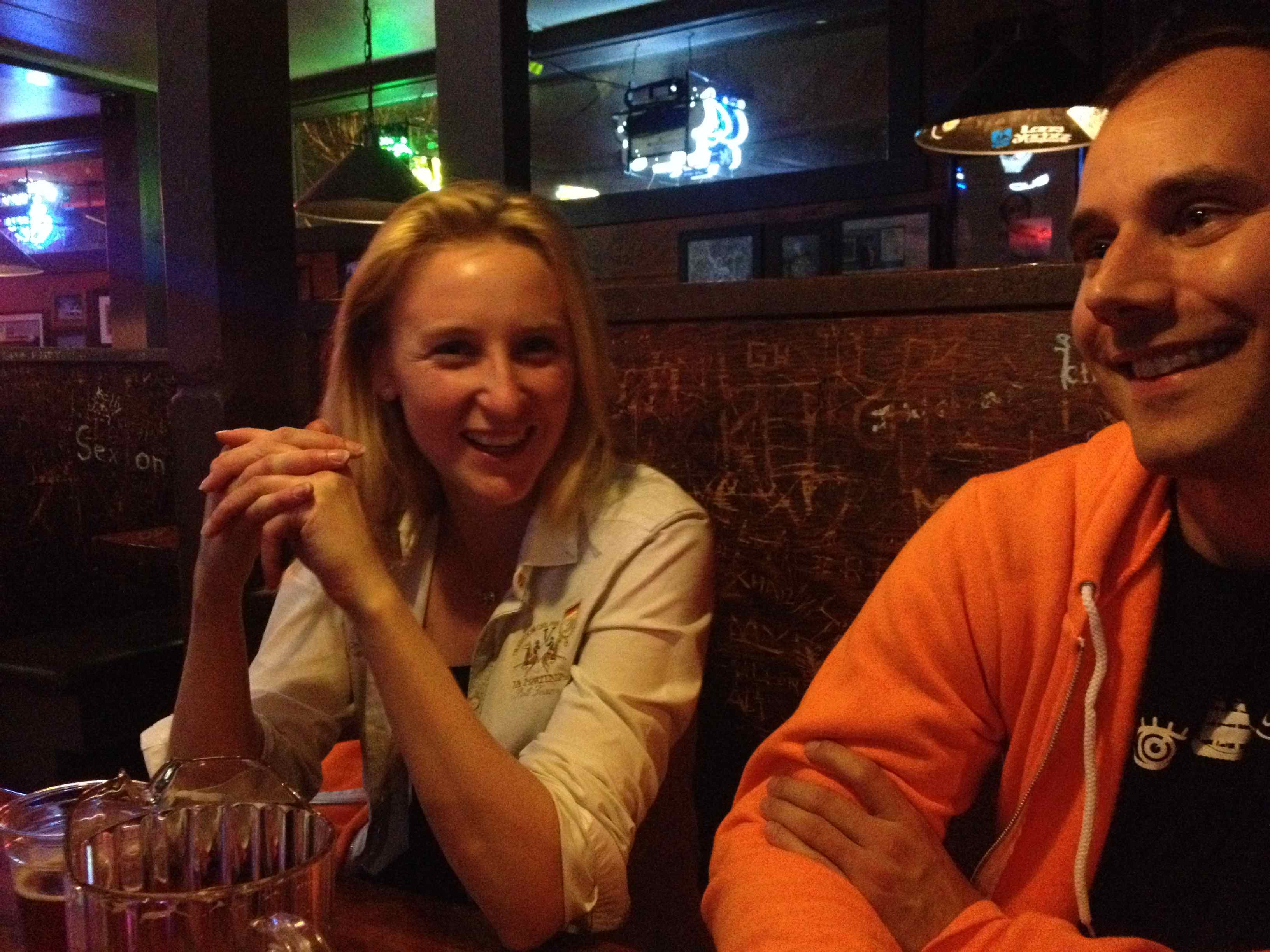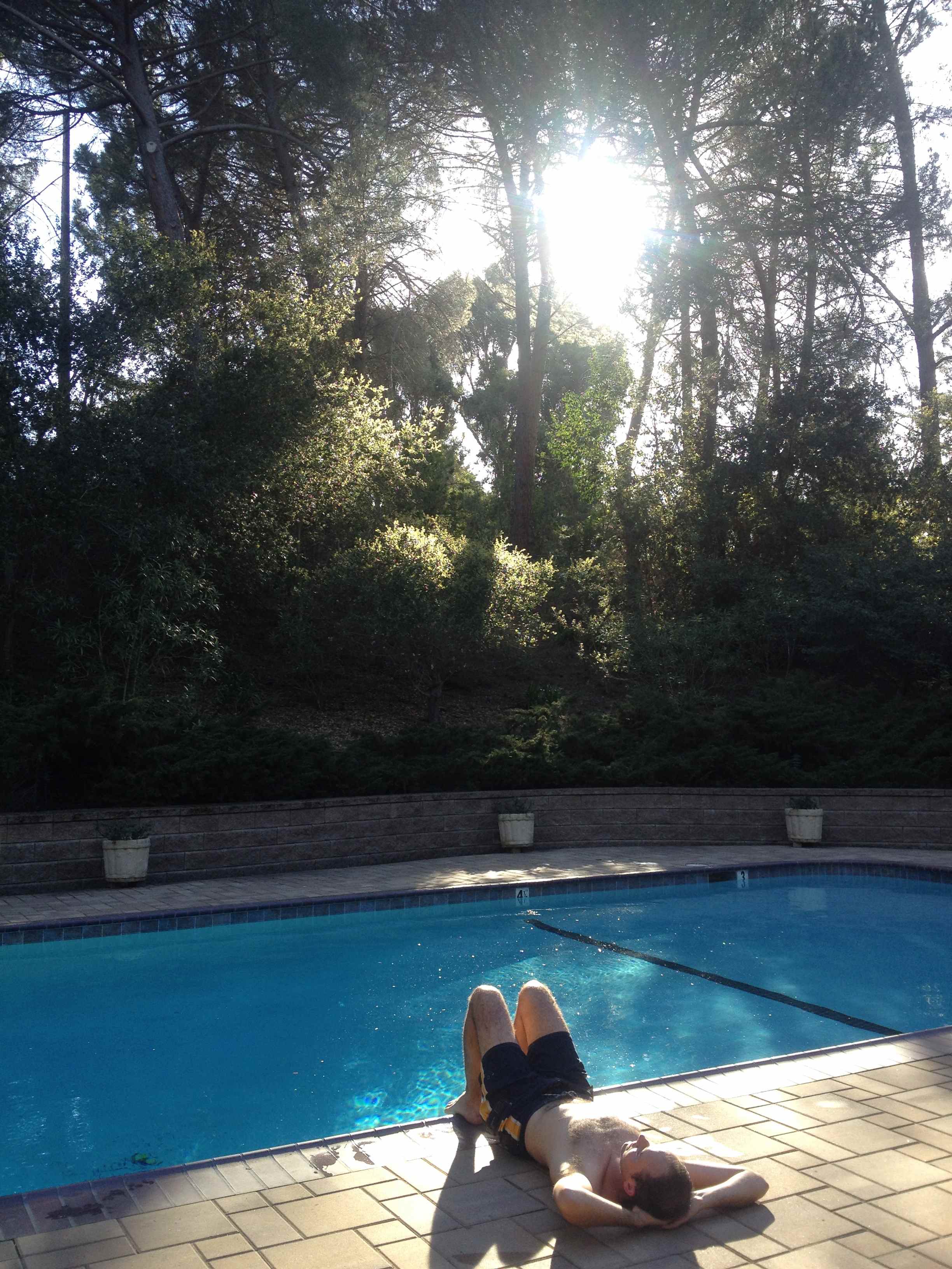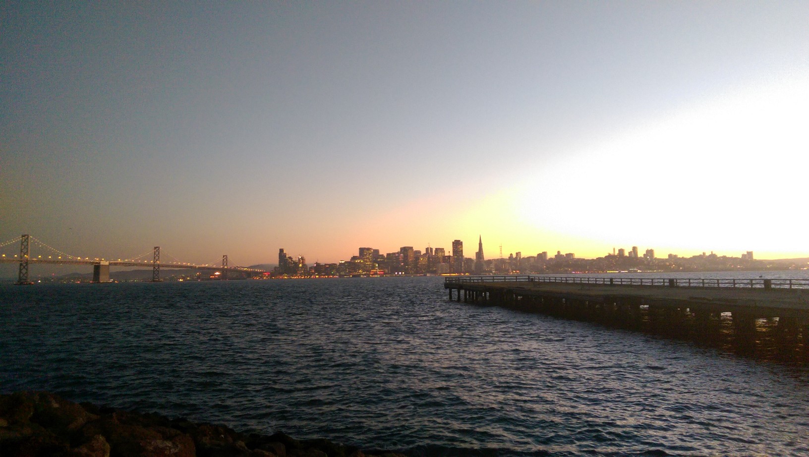Le soir, elle fut présentée comme il se doit à la grand rue de Palo Alto, au sauna, au voisin et au Dutch Goose. A SF nous fîmes ensemble la connaissance de charmants jeunes américains éméchés dans un bar avant d'aller contempler le coucher de soleil sur San Francisco, le Bay Bridge et le Golden Gate Bridge depuis Treasure Island, une île construite en 1939 en plein milieu de la baie et jouissant d'une vue spectaculaire. Nous errâmes sur l'embarcadère pour aller manger des fruits de mer et participâmes à une soirée jacuzzi/barbecue sur la terrasse du bureau d'A comme il se doit.