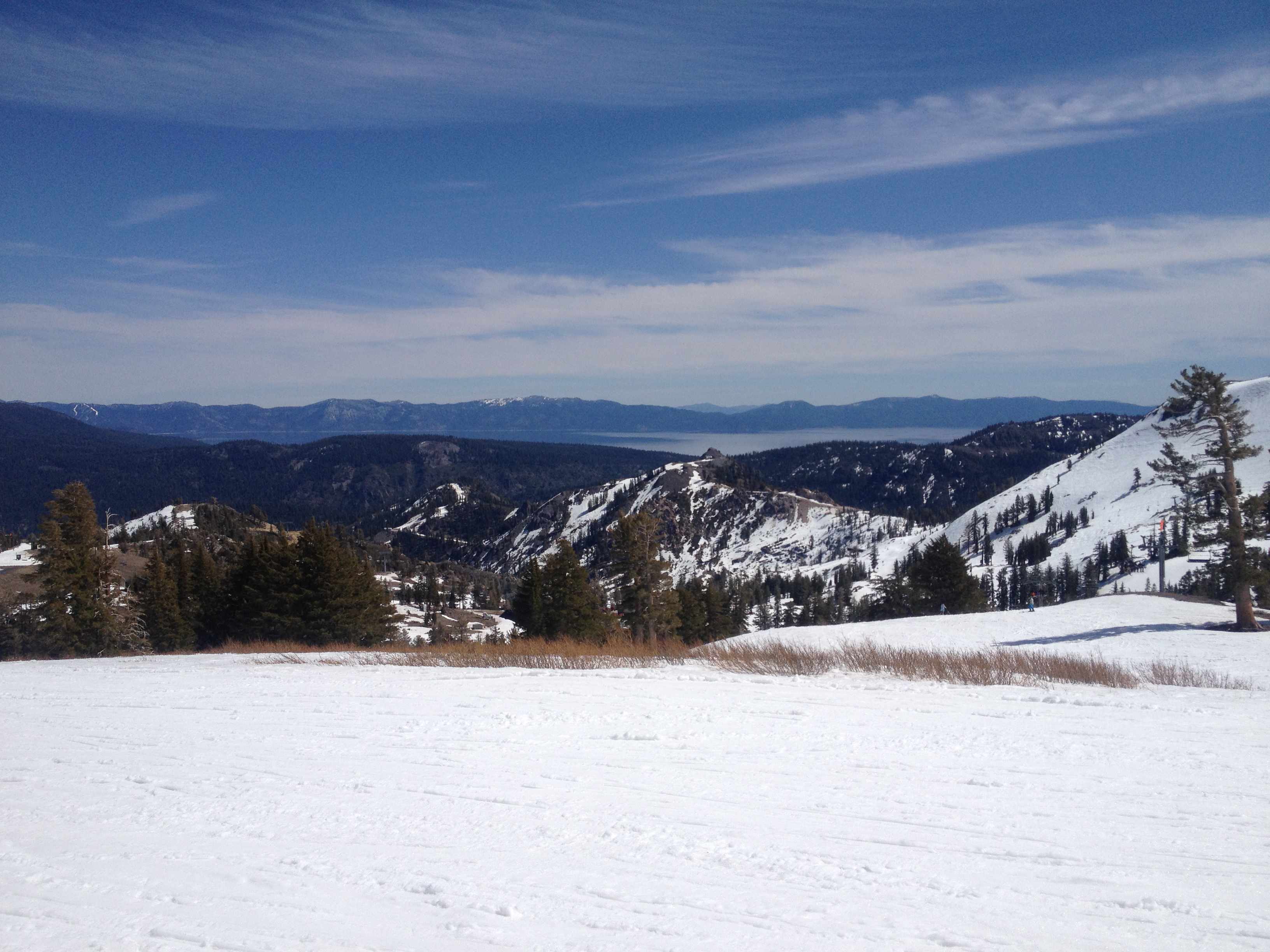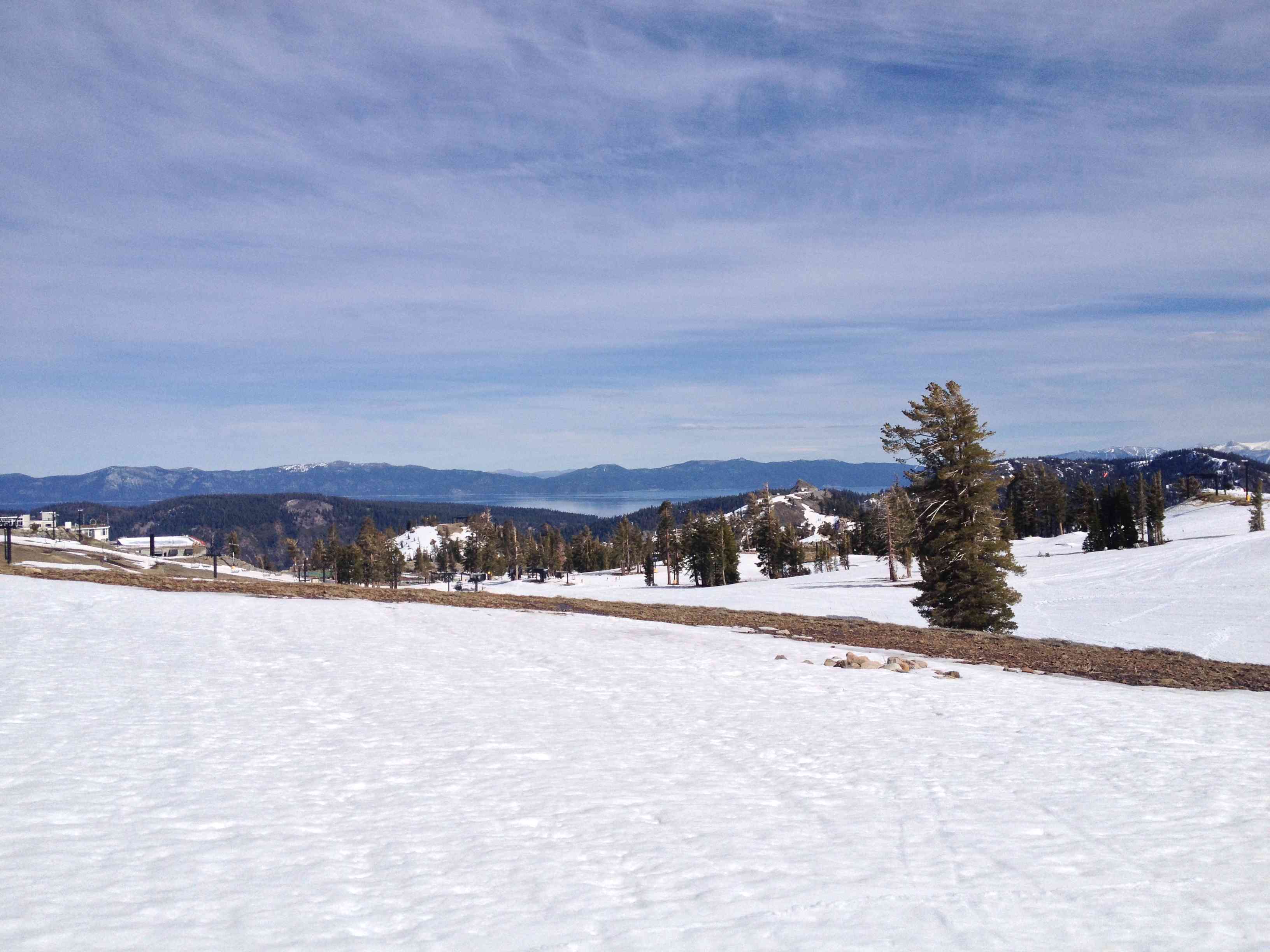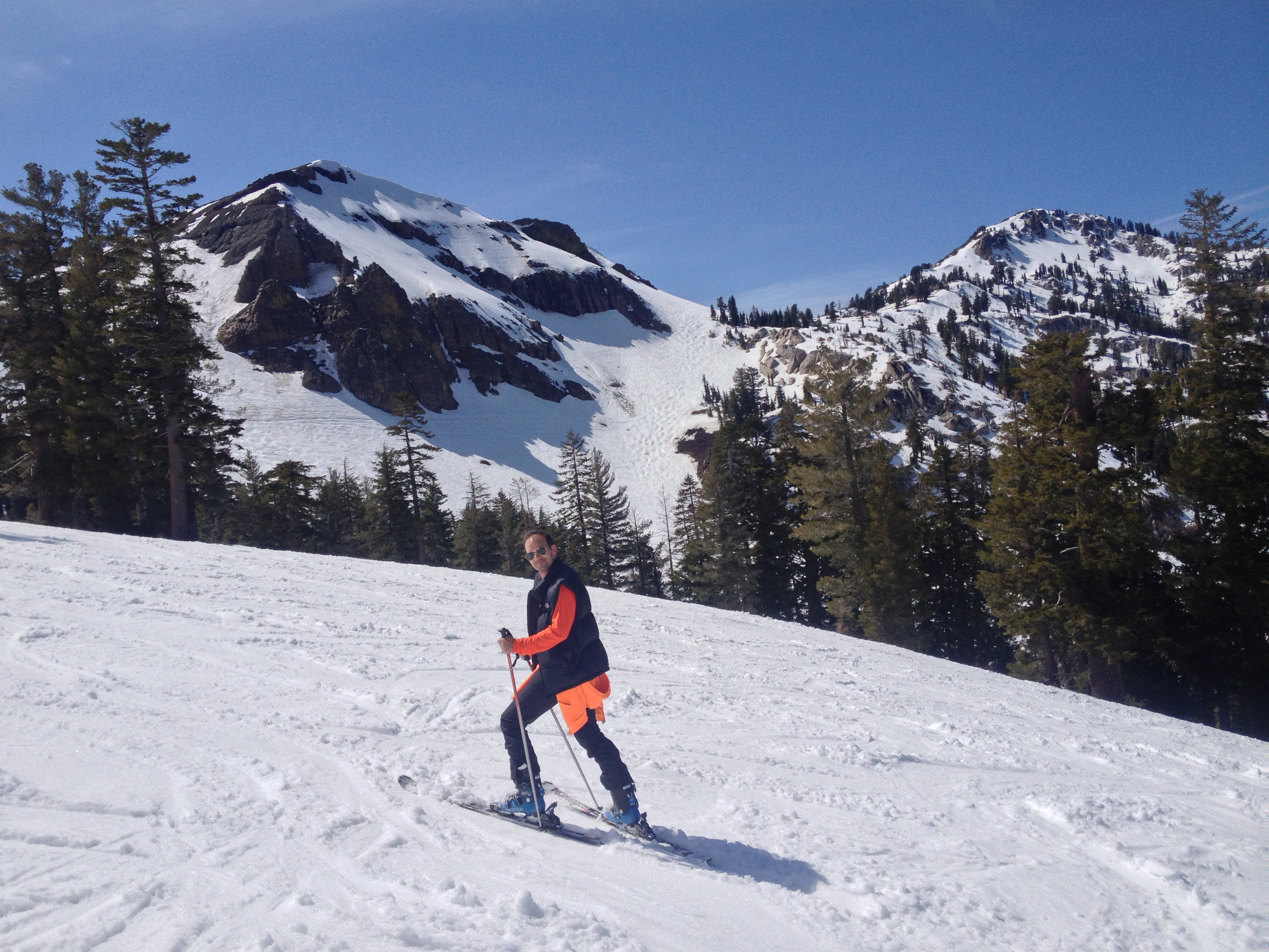 Aux aurores zénithales, alors que mes collègues les moins chanceux n'avaient pas encore éclos de leurs sacs de couchage sur les canapés, nous filâmes à Squaw Valley enfiler des combinaisons et chausser des skis avant de nous élancer sur les pistes ! La neige n'ayant pas été au rendez-vous cette année et la saison étant avancée, seule la moitié du domaine était ouverte. Il n'y avait pas grand monde et, finalement, la neige n'était pas si mauvaise. Certes, le duvet floconneux était un peu épars par endroits (j'ai dû déchausser pour traverser une langue de terre en redescendant) mais il y avait de quoi s'amuser sur l'ubac.