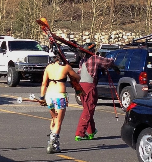 Le beau temps donna aux skieurs l'occasion de skier en petite tenue et nous ne comptions plus les filles en haut de maillot de bain et les surfeurs torse-nu. La Californie, quoi.